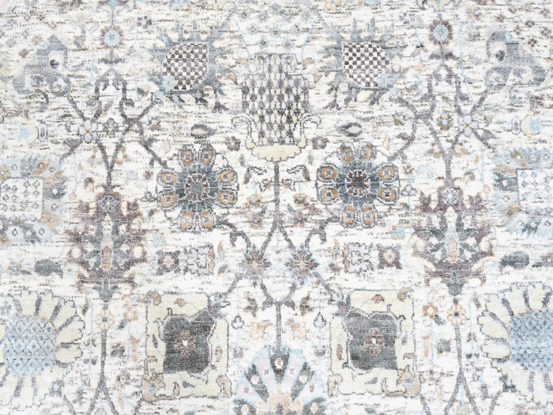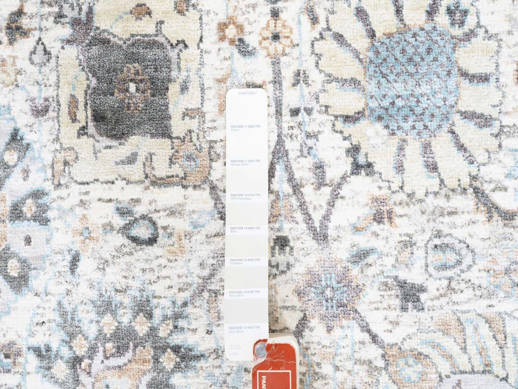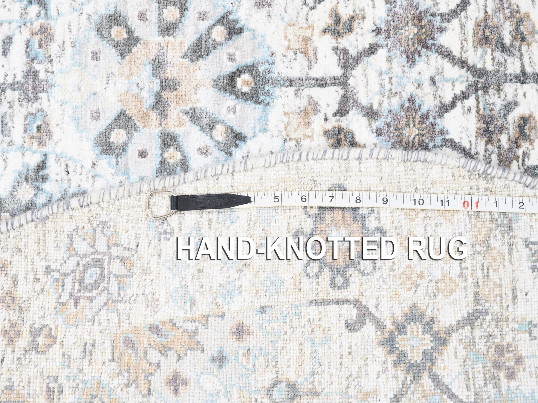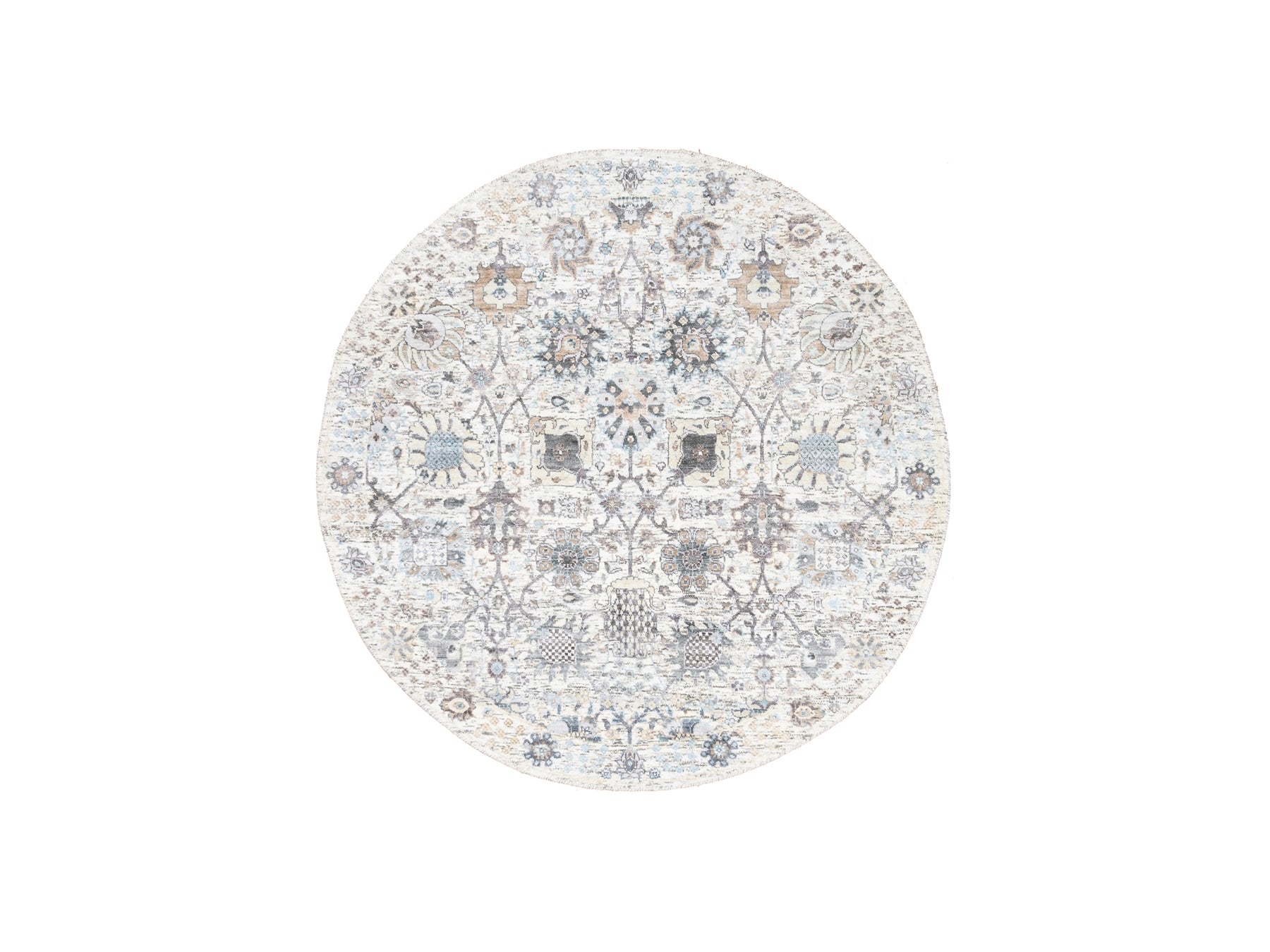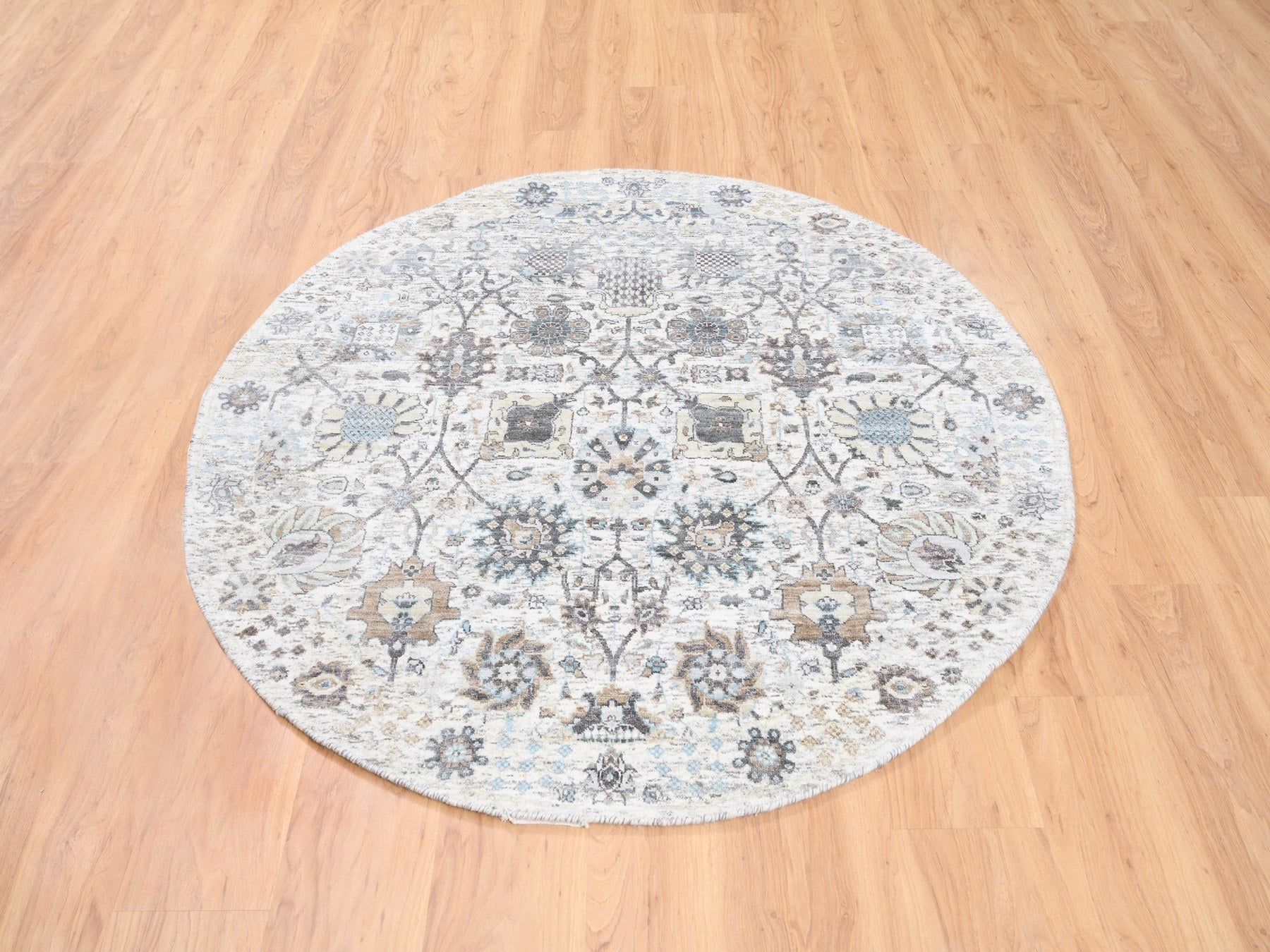 5'0" x 5'1" New Hand Knotted Ivory Wool & Silk Round Oriental Rug - MOA10262286