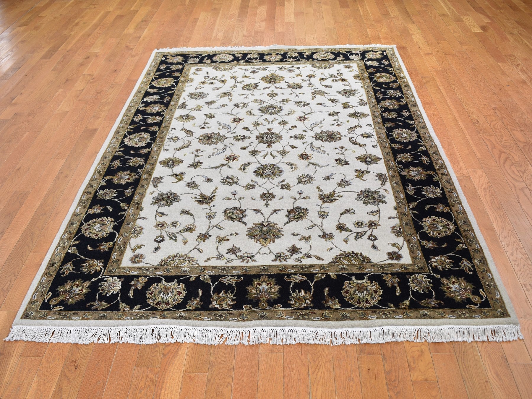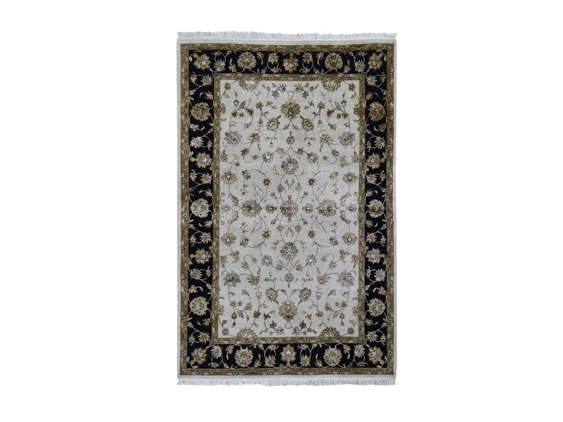 6'0" x 9'3" New Hand Knotted Ivory Wool & Silk Rectangle Oriental Rug - MOA10259016
