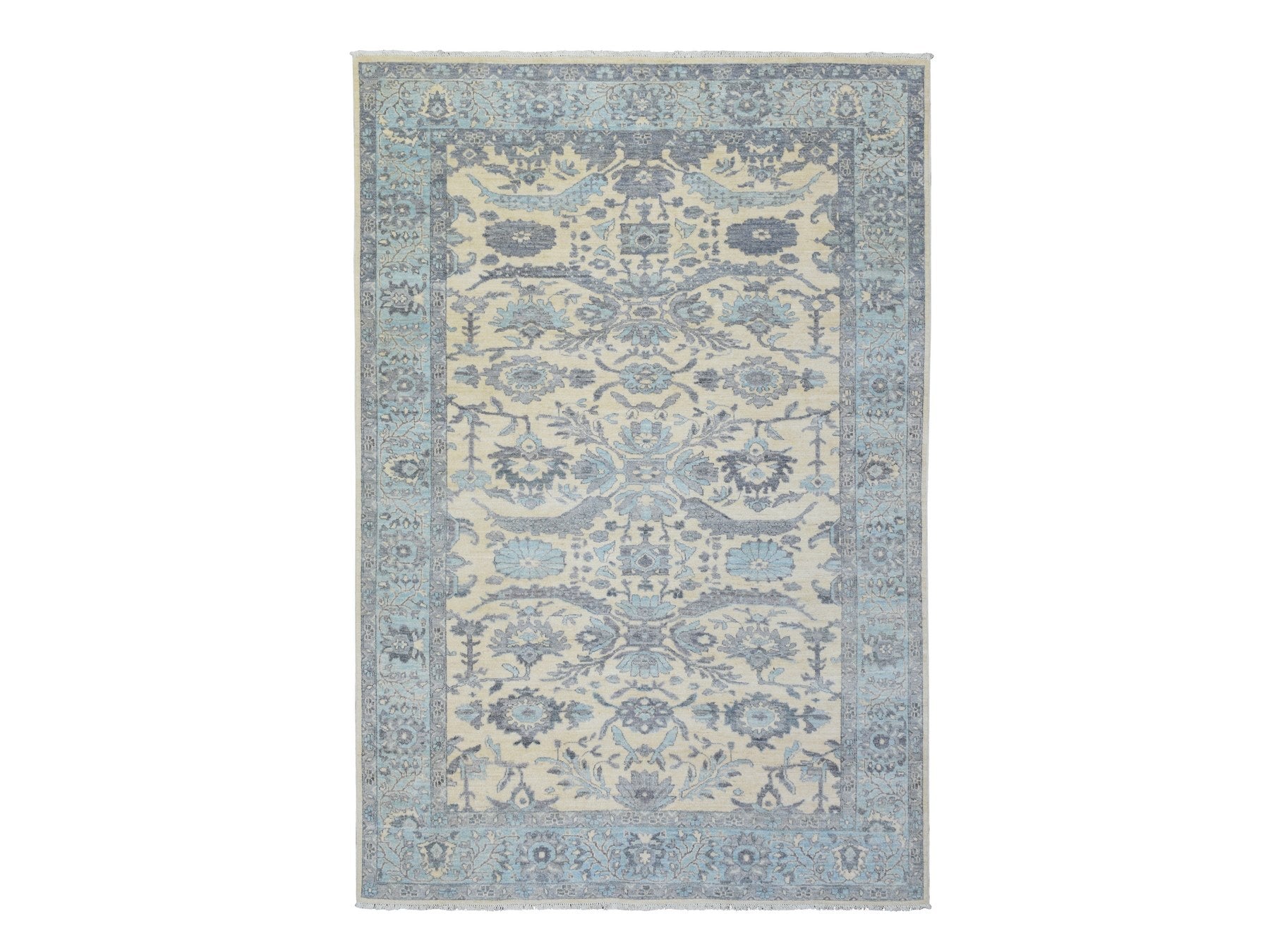 6'1" x 9'0" New Hand Knotted Ivory Wool Rectangle Oriental Rug - MOA10272536