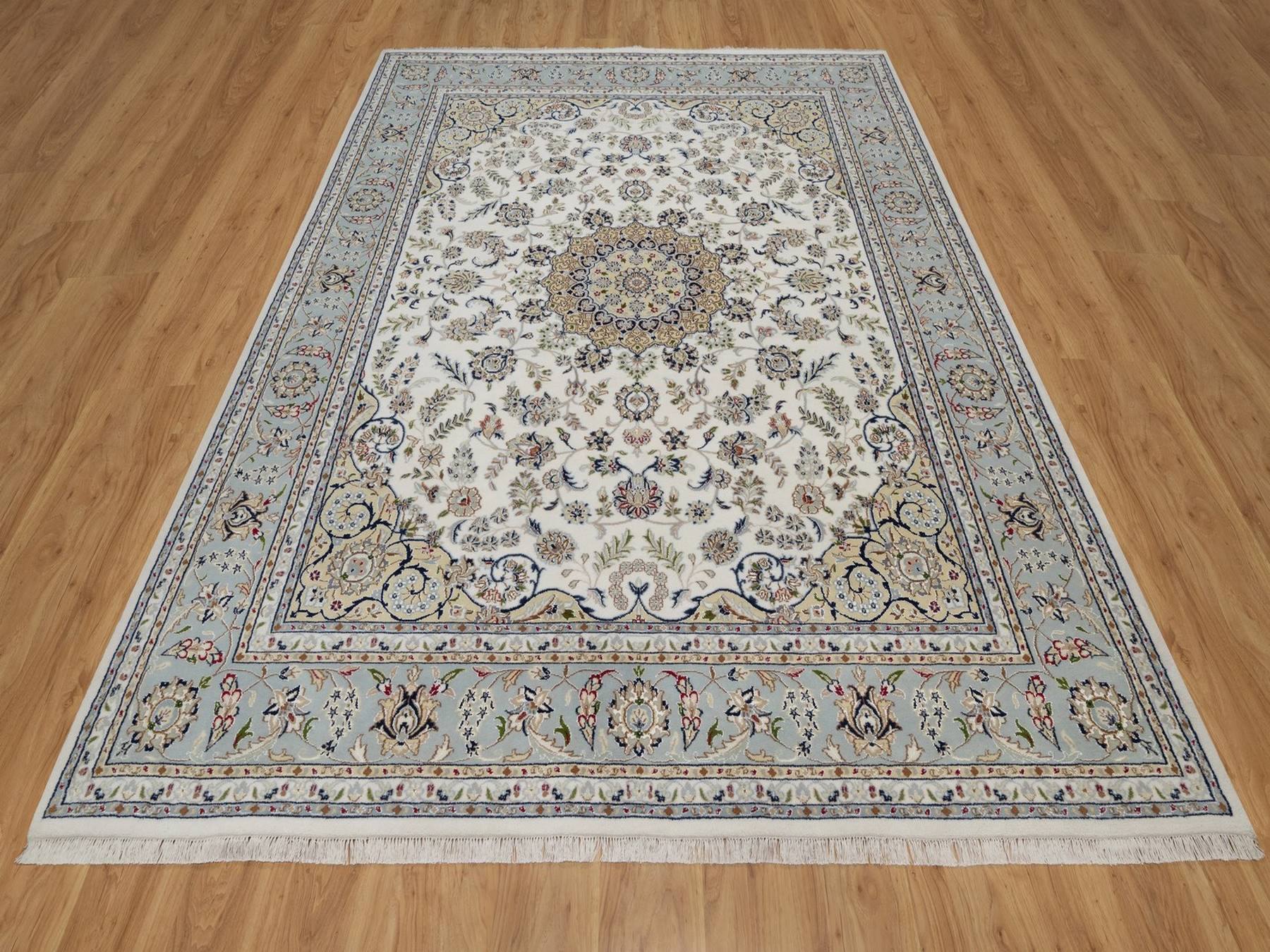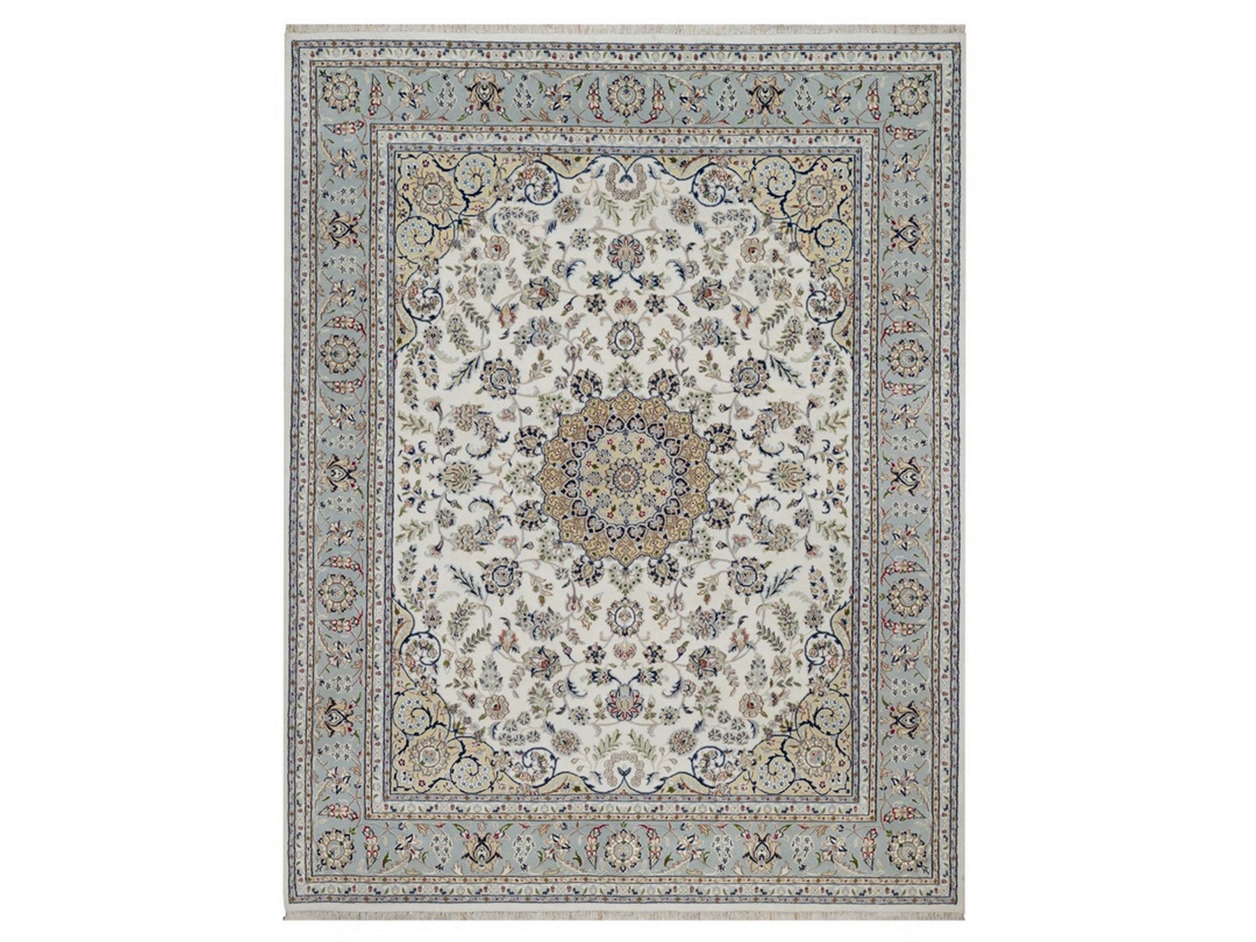 7'11" x 10'1" New Hand Knotted Ivory Wool & Silk Rectangle Oriental Rug - MOA10291532