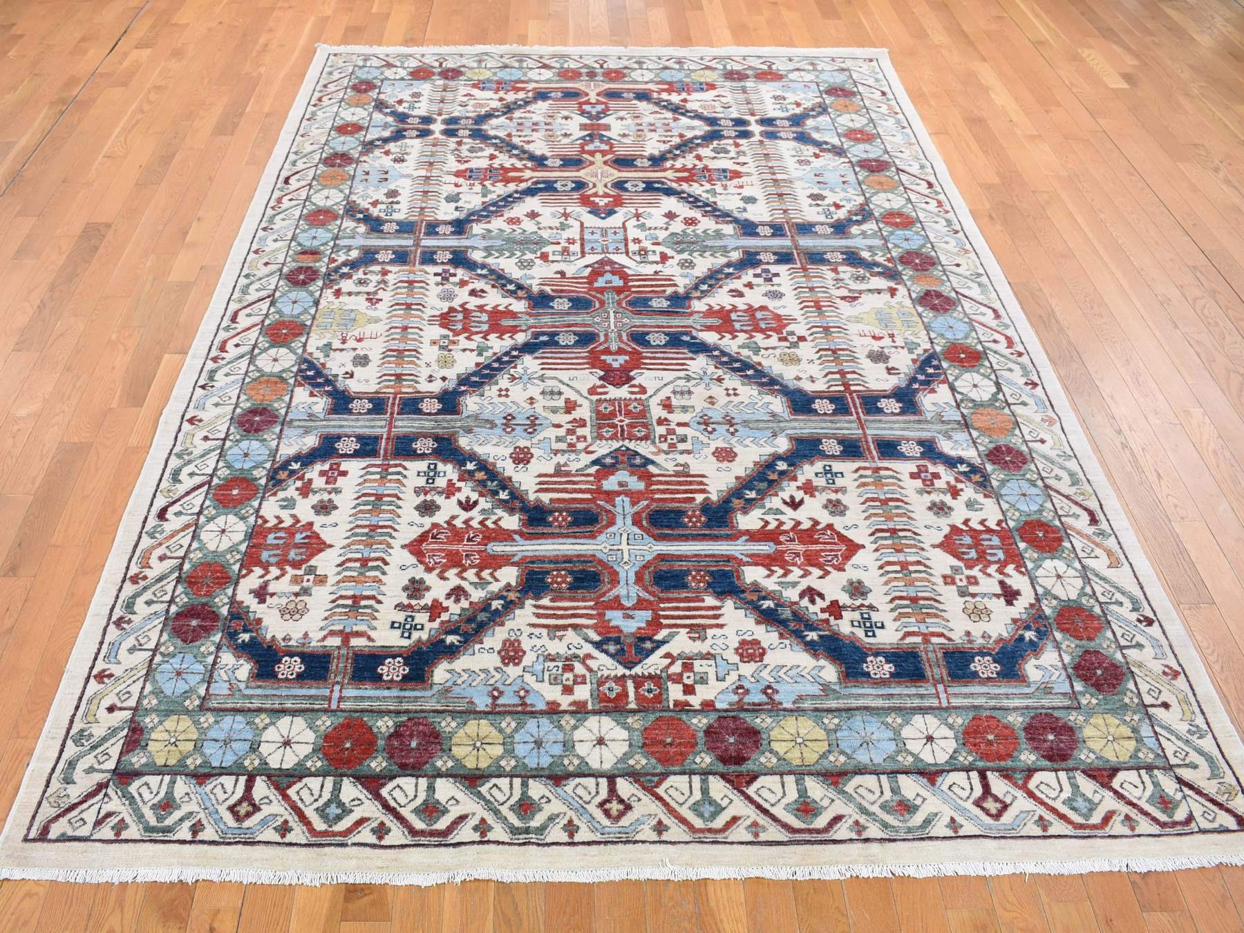 7'5" x 12'2" New Hand Knotted Ivory Wool Rectangle Oriental Rug - MOA10280272