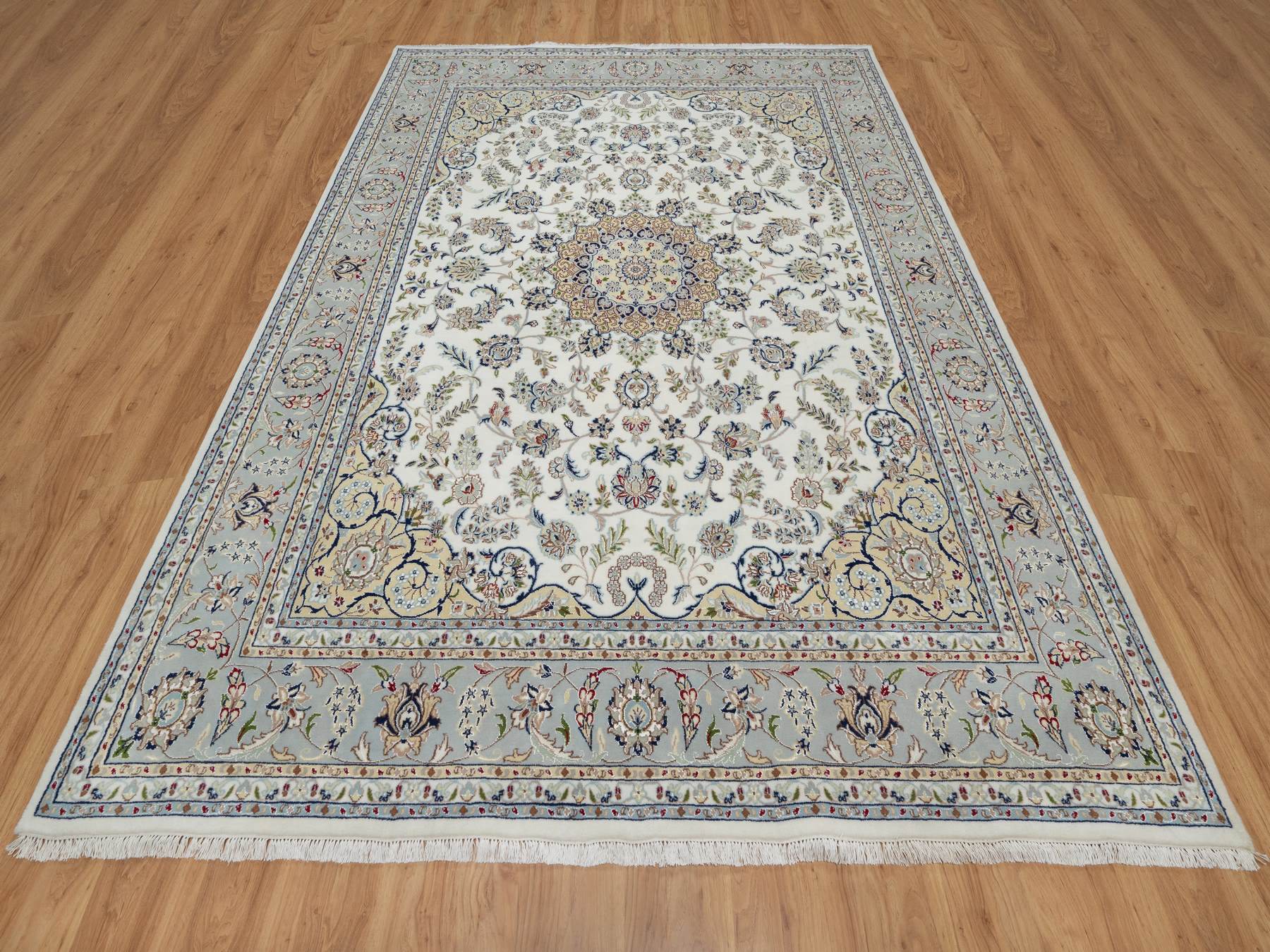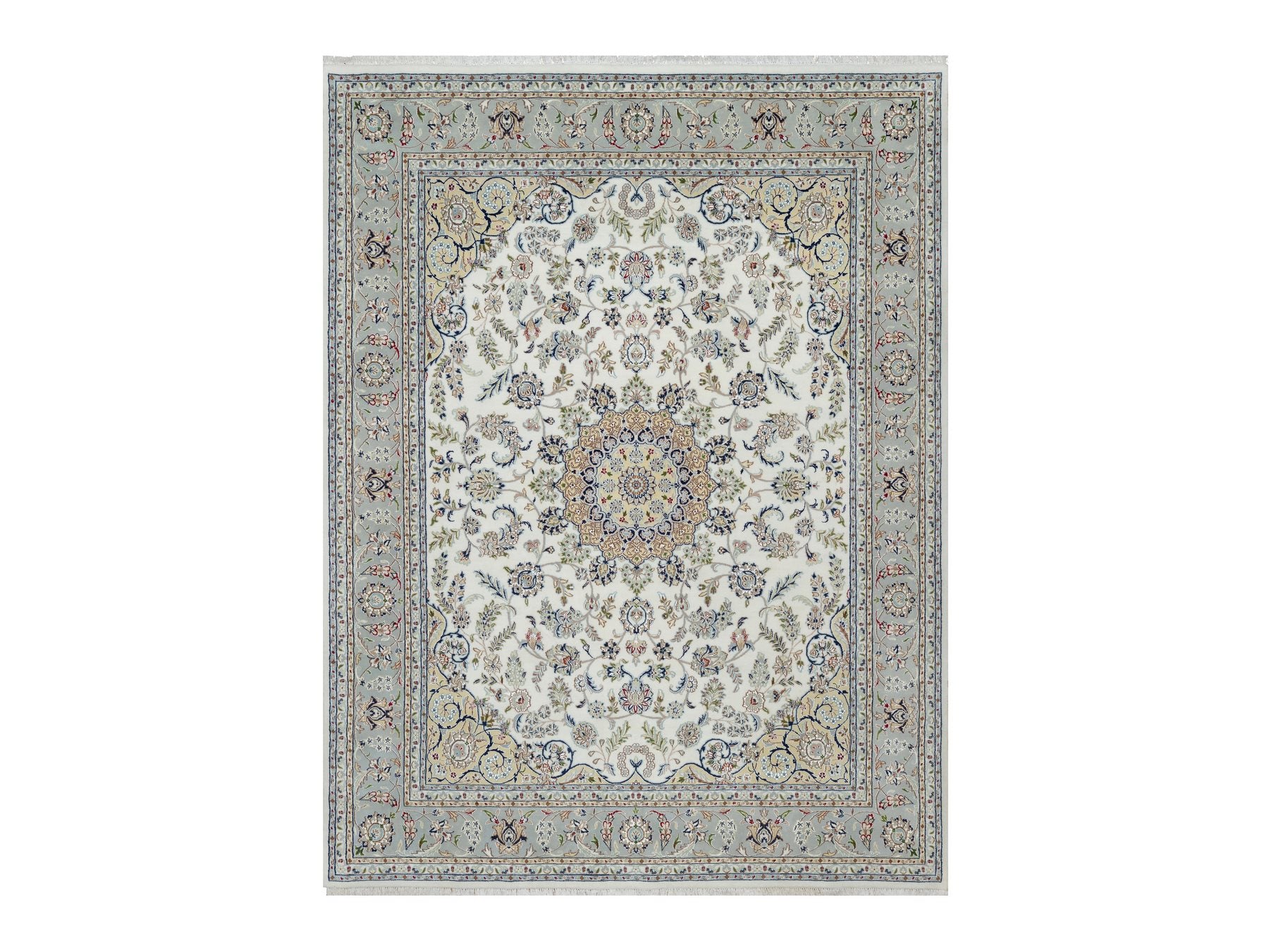 7'8" x 10'2" New Hand Knotted Ivory Wool & Silk Rectangle Oriental Rug - MOA10291074