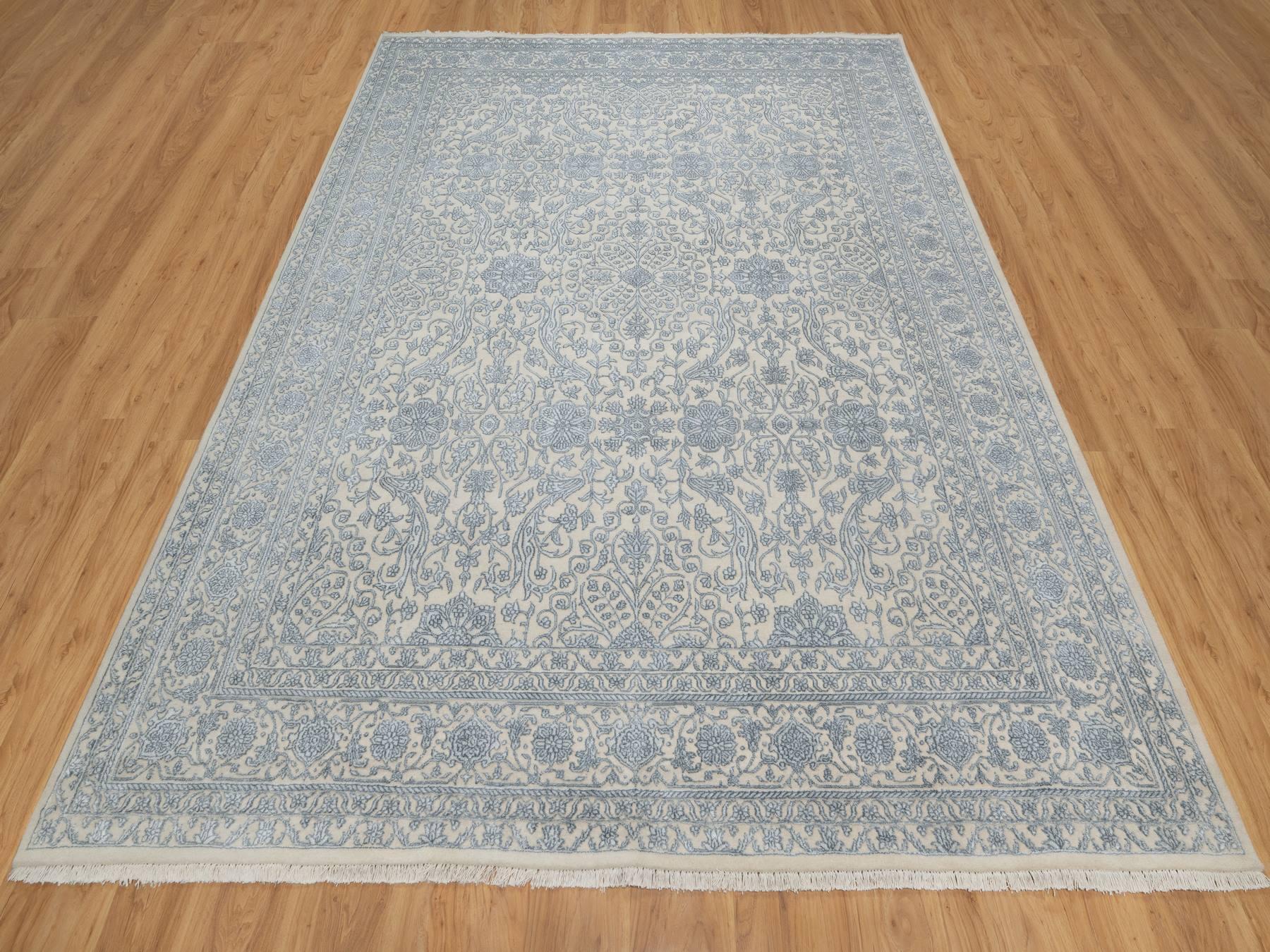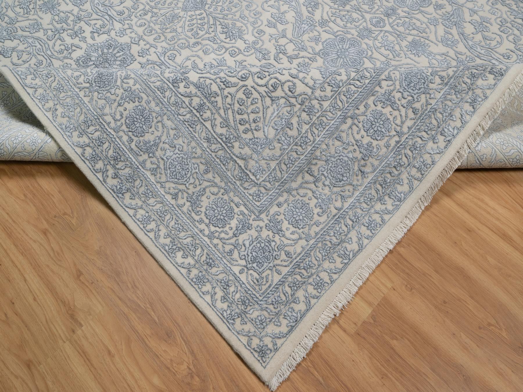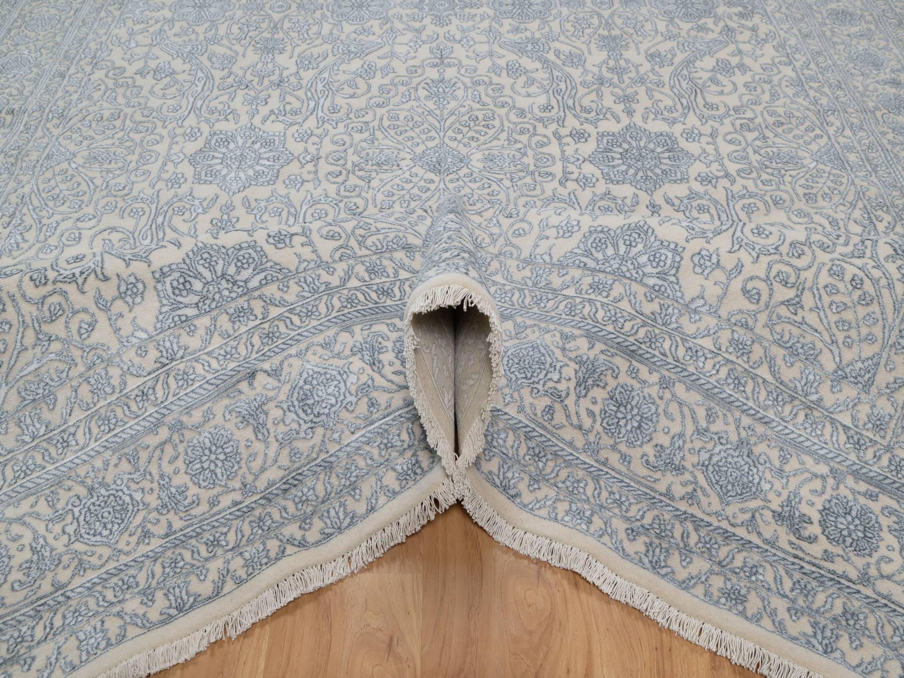 8'0" x 10'2" New Hand Knotted Ivory Wool & Silk Rectangle Oriental Rug - MOA10291352