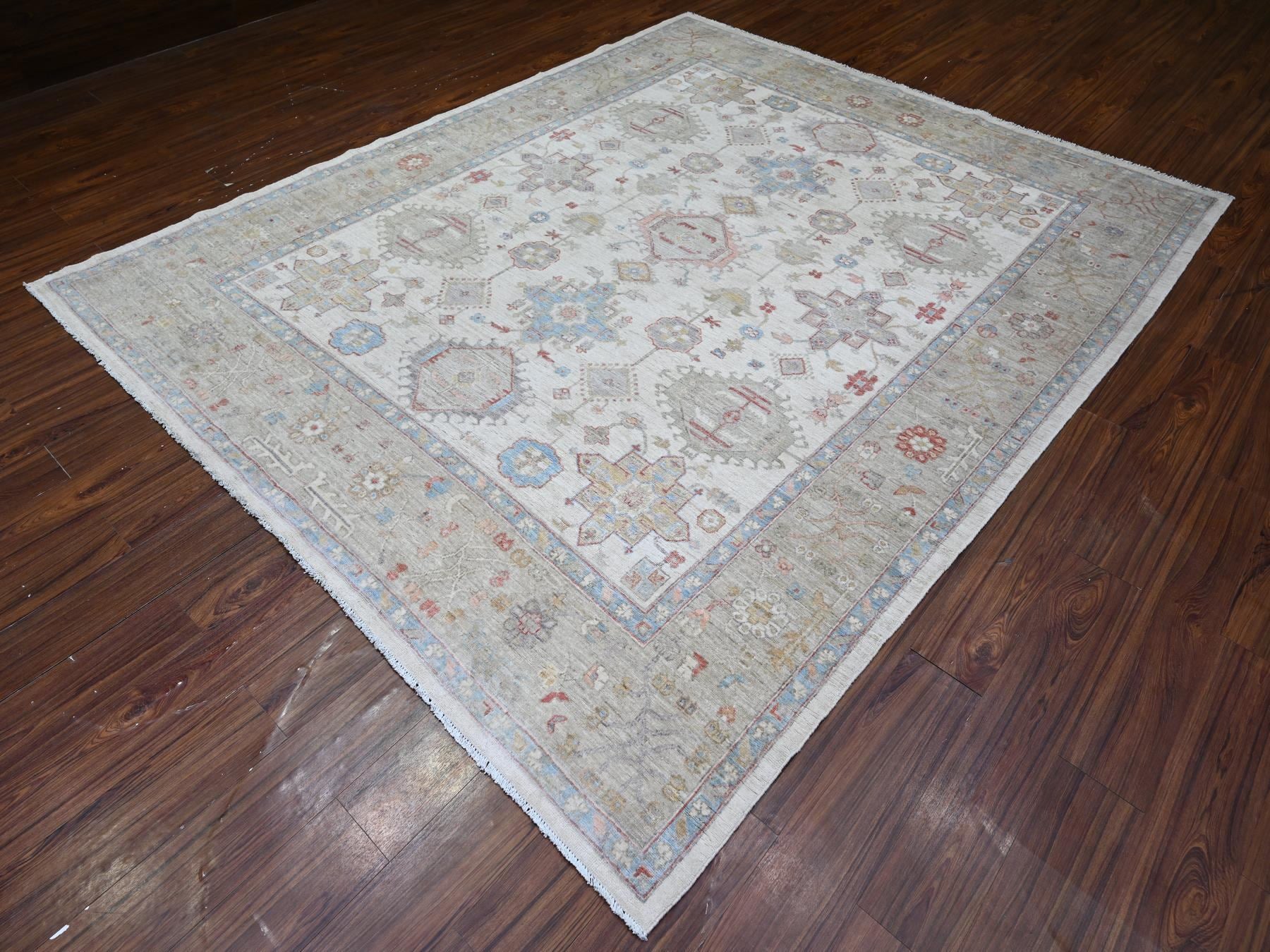 8'0" x 9'9" New Hand Knotted Ivory Wool Rectangle Oriental Rug - MOA10274926