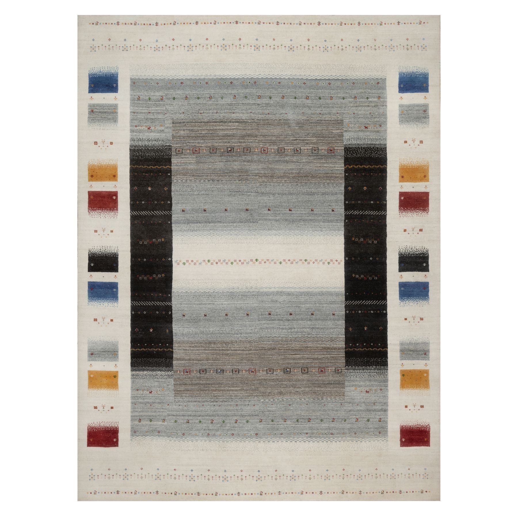 8'10" x 12'0" New Hand Knotted Ivory Wool Rectangle Oriental Rug - MOA10291348