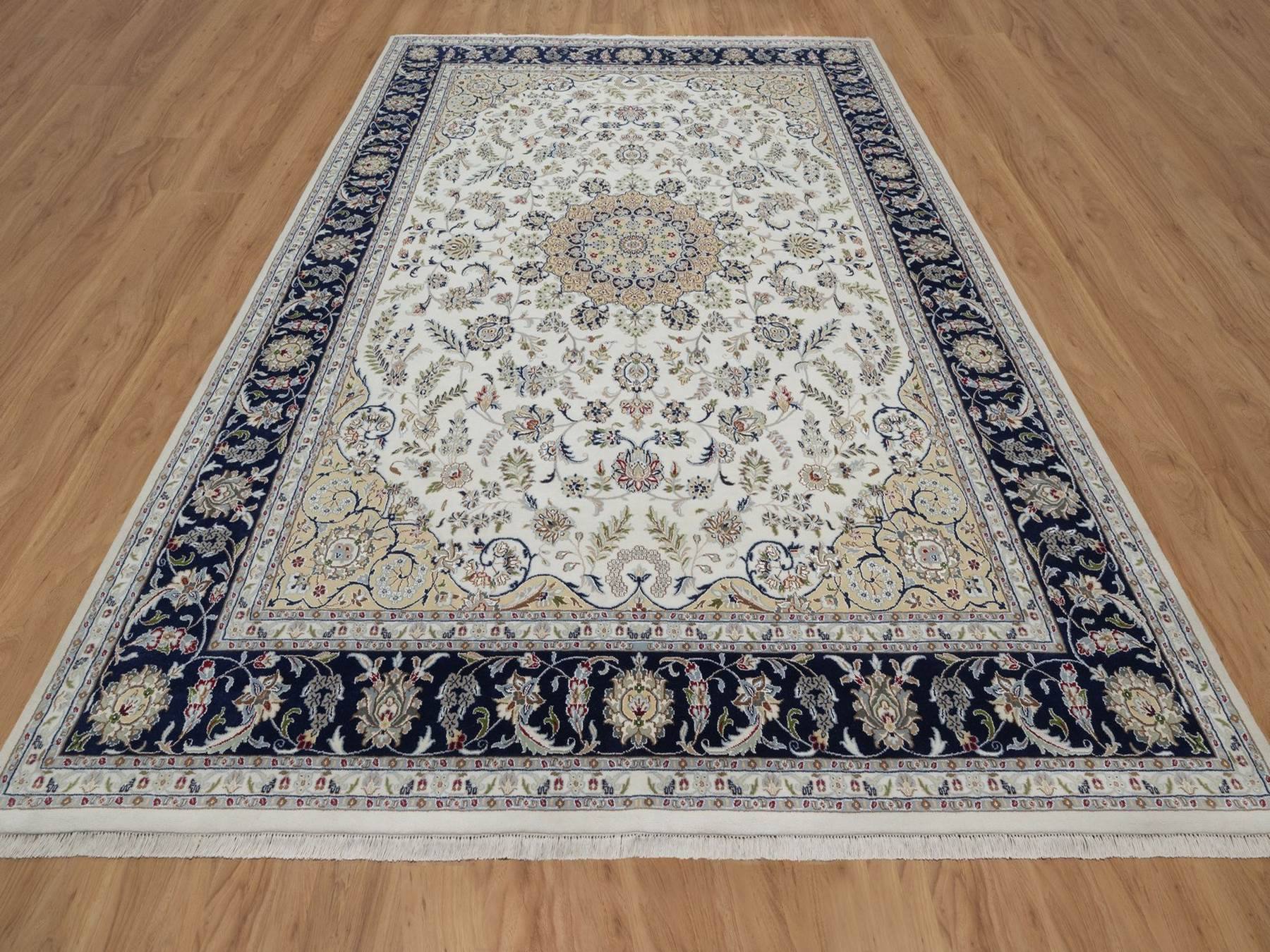 8'11" x 12'3" New Hand Knotted Ivory Wool & Silk Rectangle Oriental Rug - MOA10291643