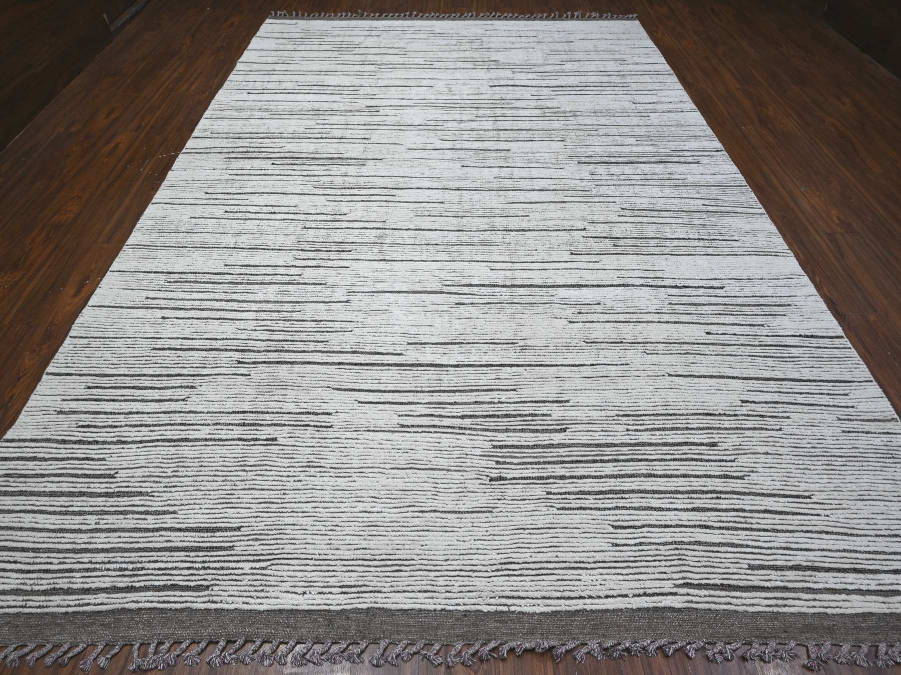 8'11" x 13'2" New Hand Knotted Ivory Wool Rectangle Oriental Rug - MOA10289190