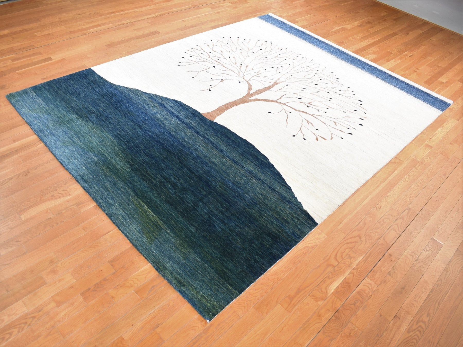 8'7" x 12'0" New Hand Knotted Ivory Wool Rectangle Oriental Rug - MOA10280817