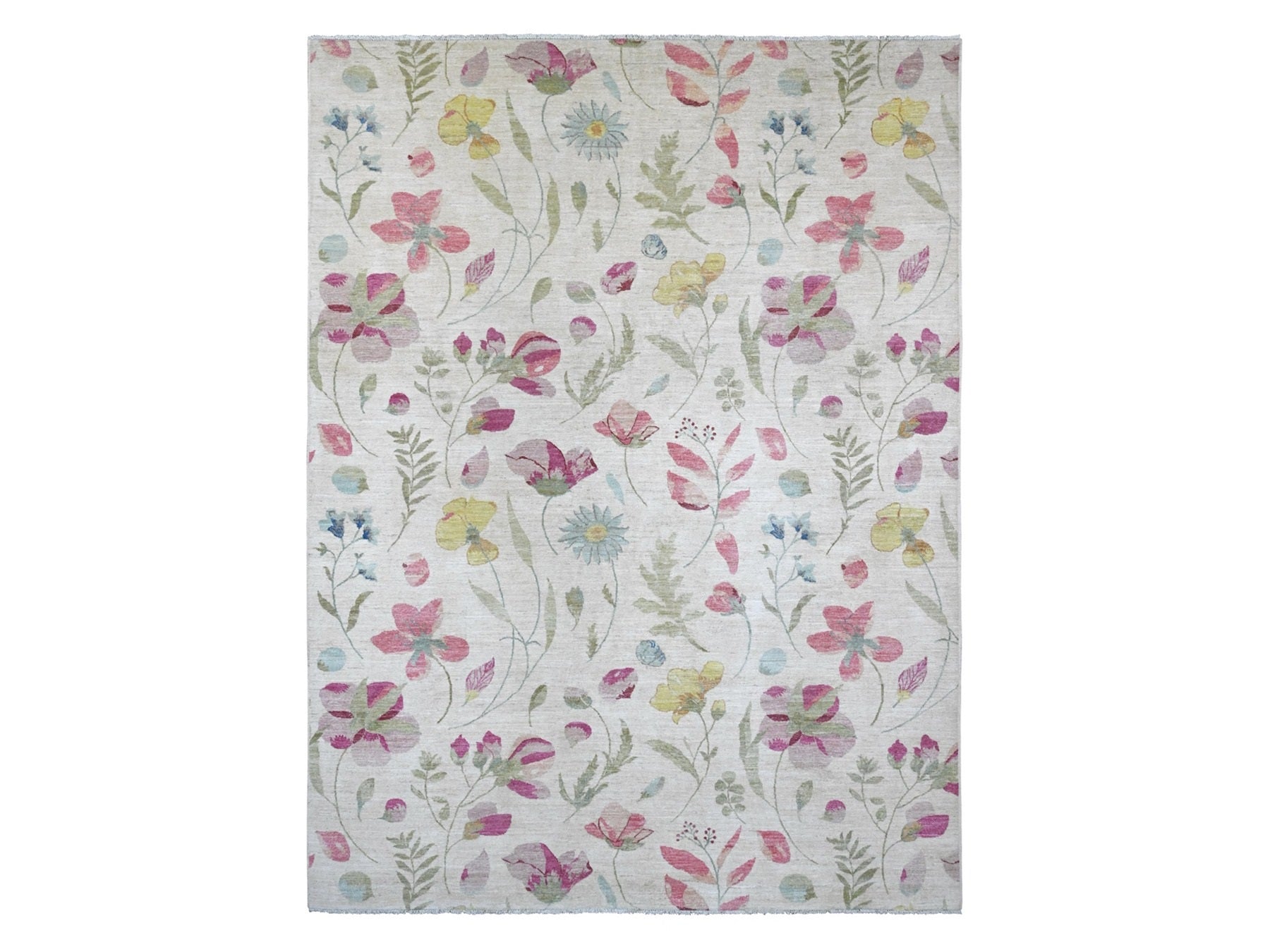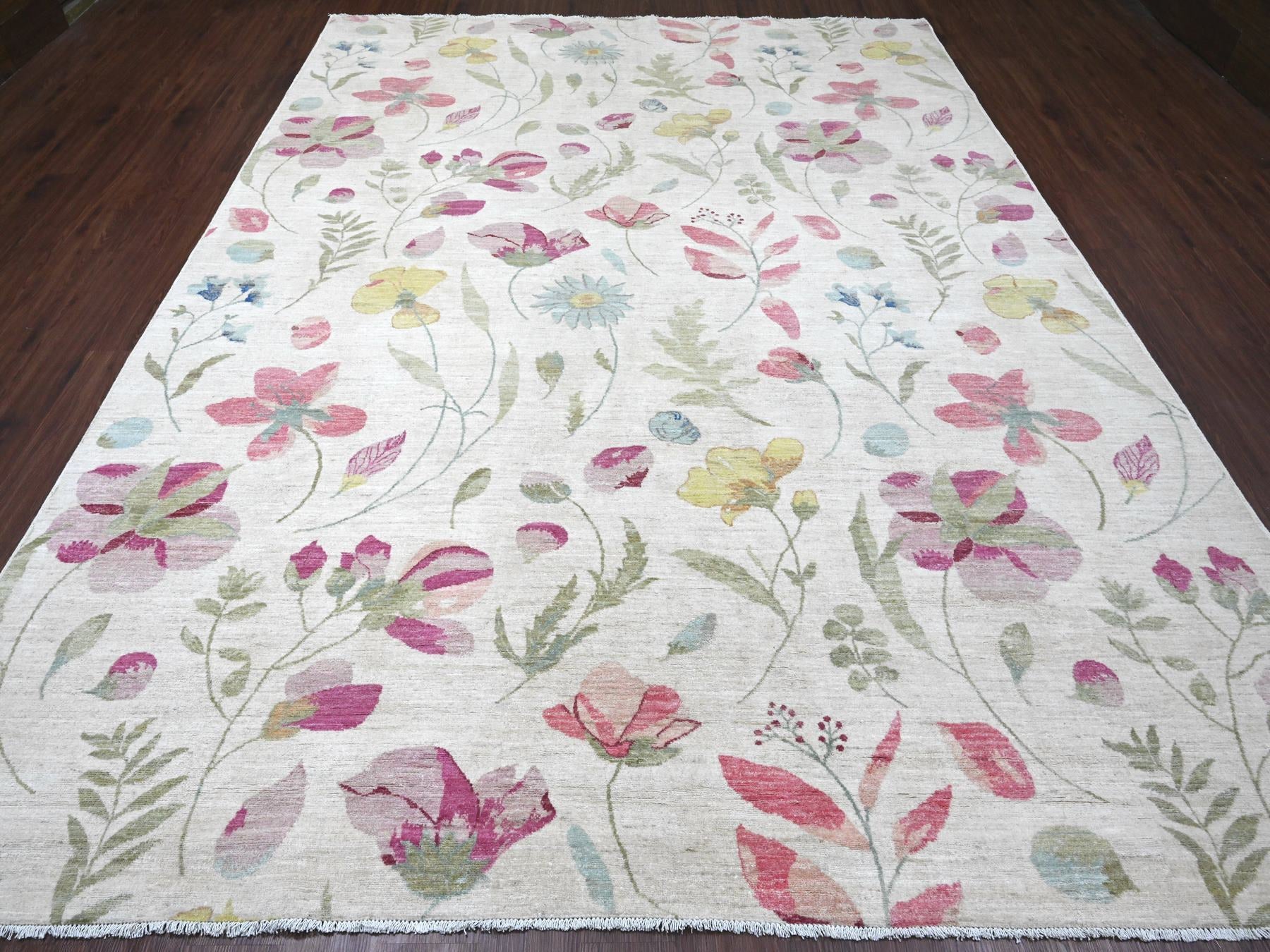9'0" x 11'9" New Hand Knotted Ivory Wool Rectangle Oriental Rug - MOA10220993