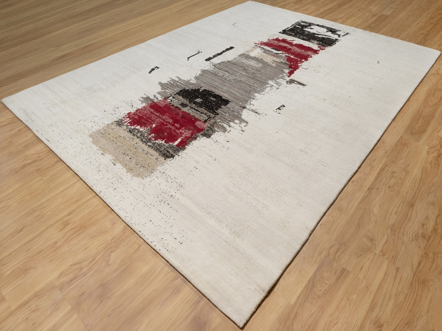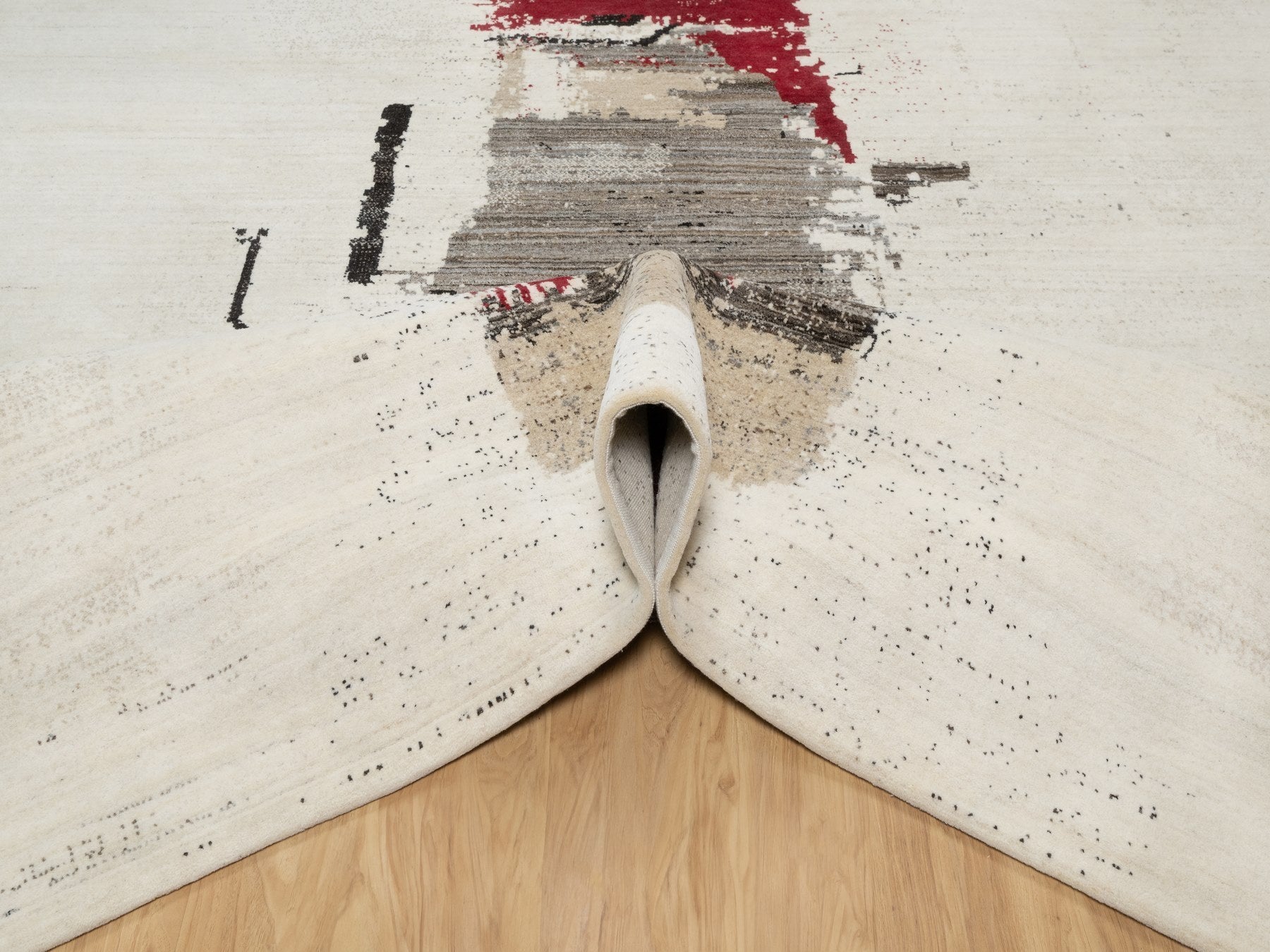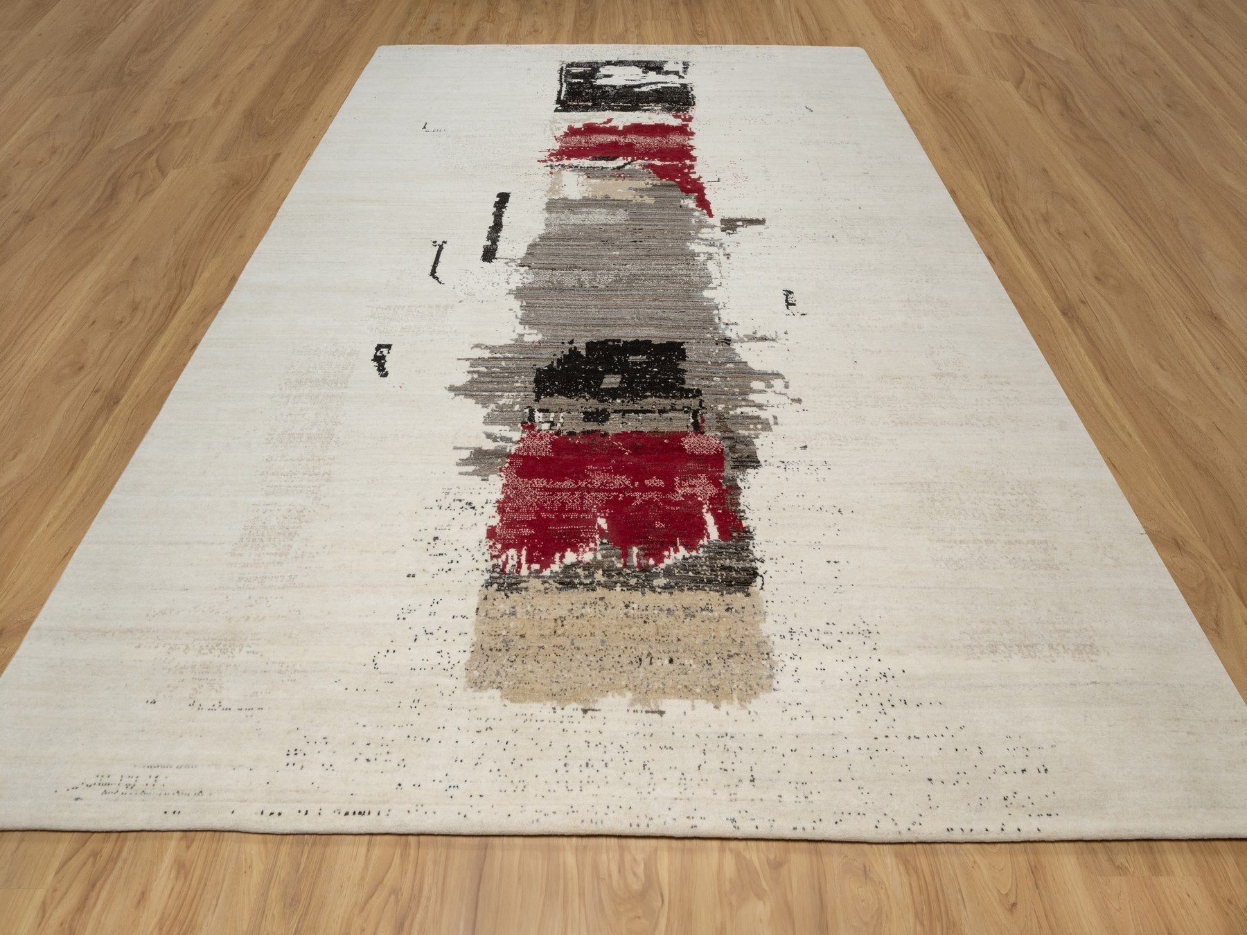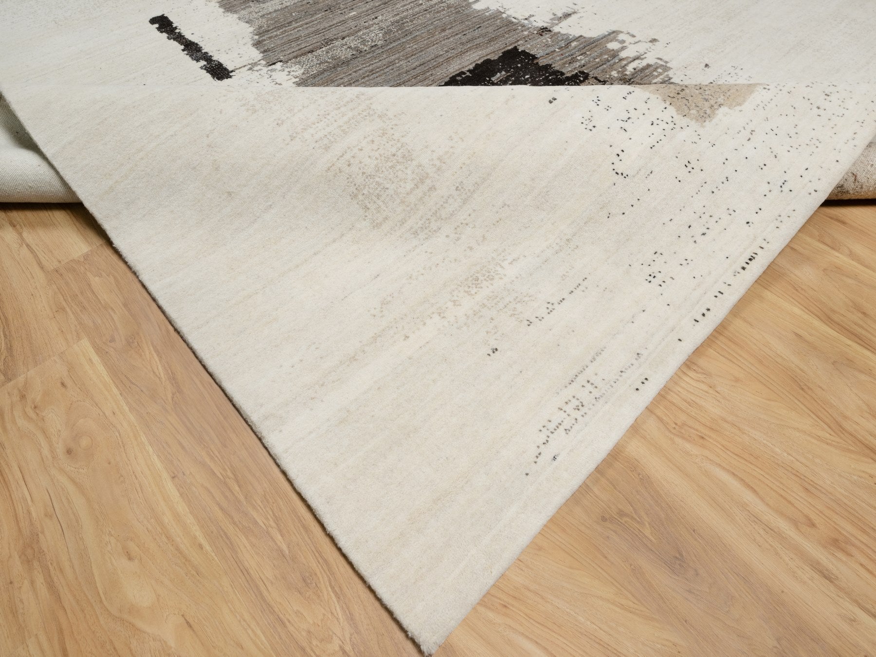 9'0" x 12'0" New Hand Knotted Ivory Wool Rectangle Oriental Rug - MOA10290782