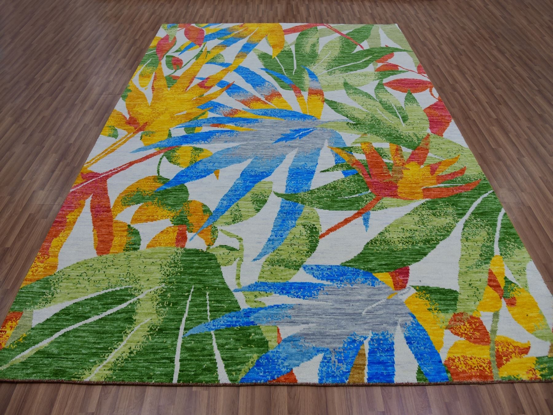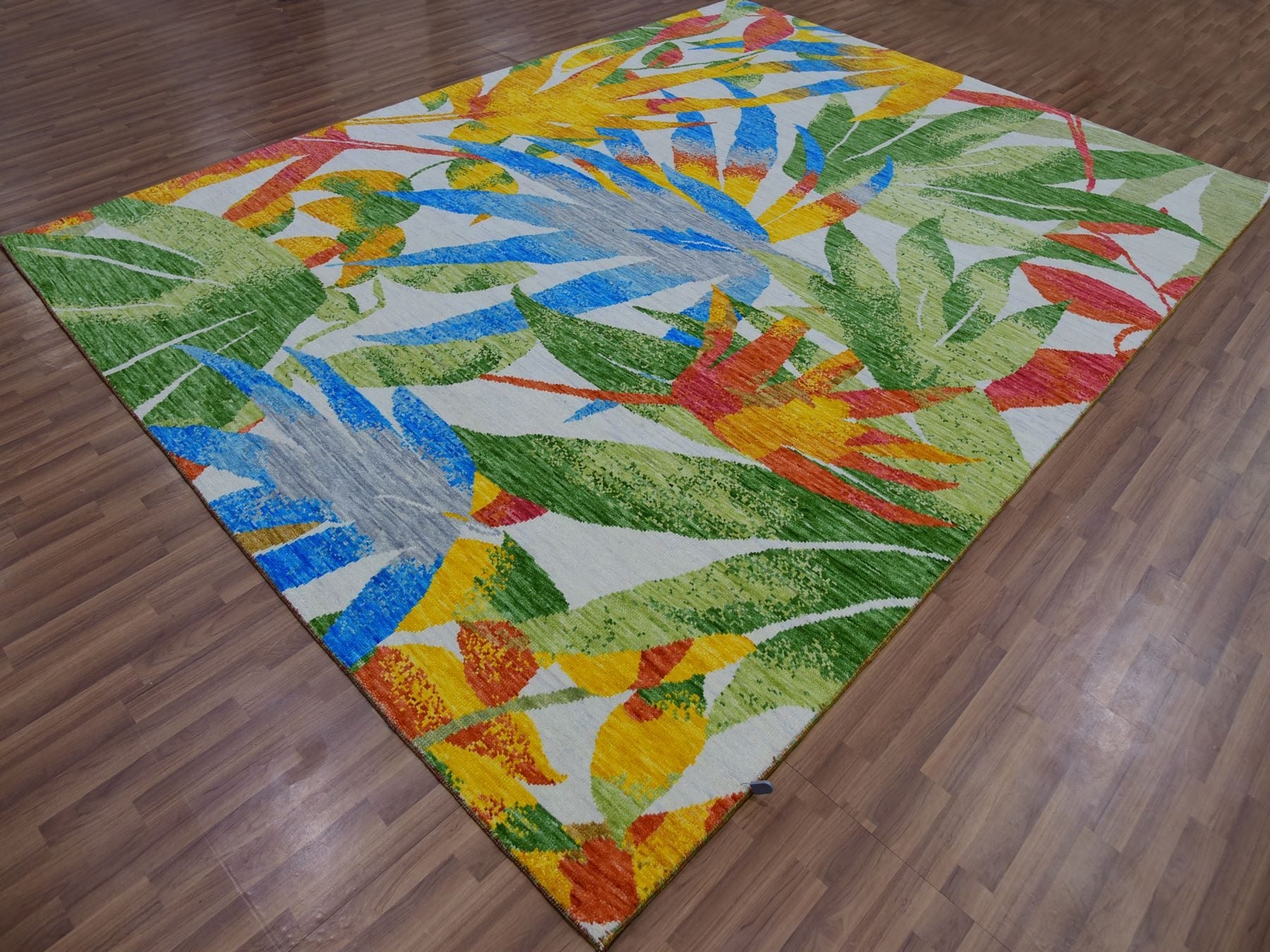 9'0" x 12'3" New Hand Knotted Ivory Wool Rectangle Oriental Rug - MOA10279936