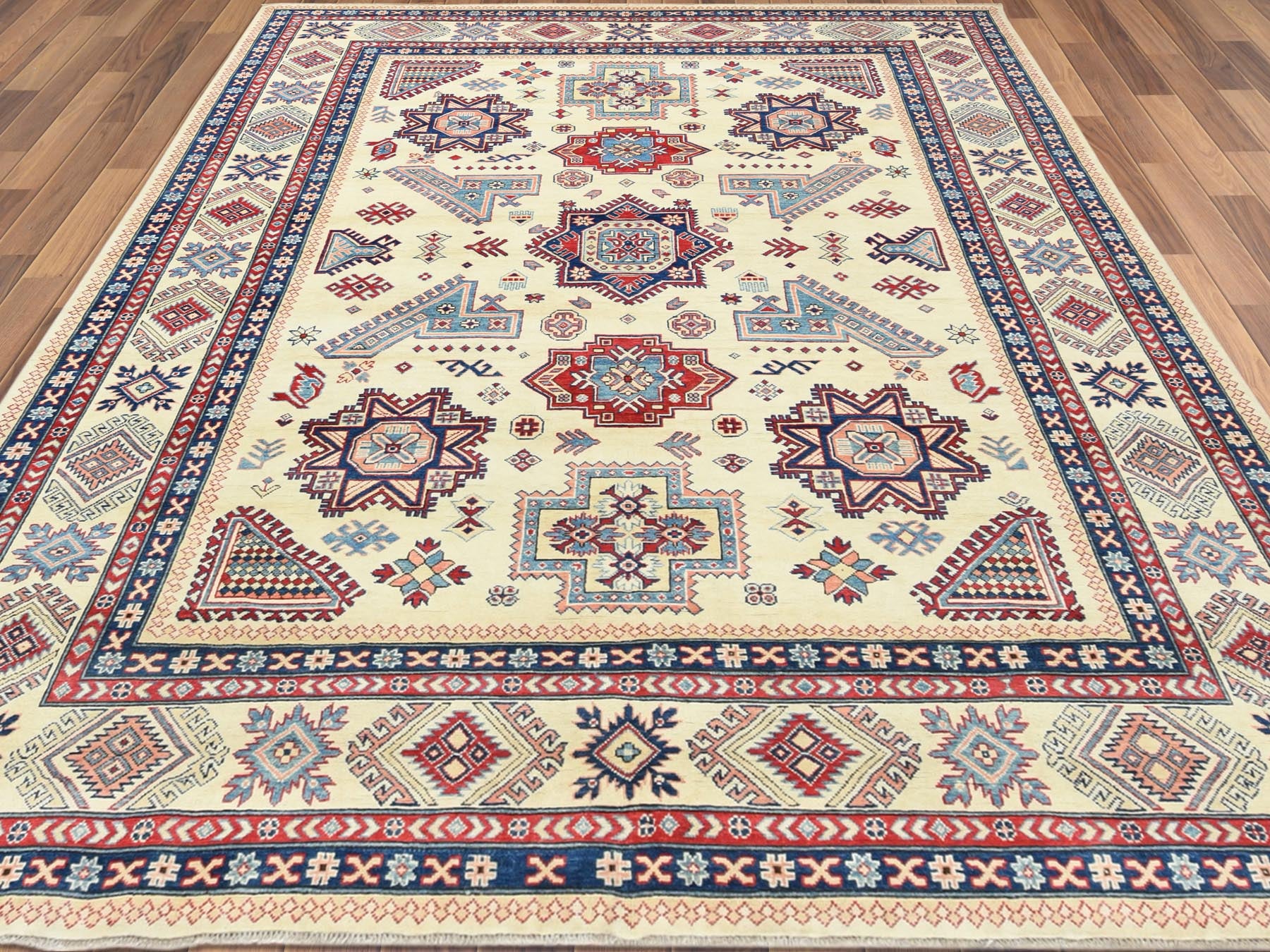 9'1" x 11'7" New Hand Knotted Ivory Wool Rectangle Oriental Rug - MOA10261532
