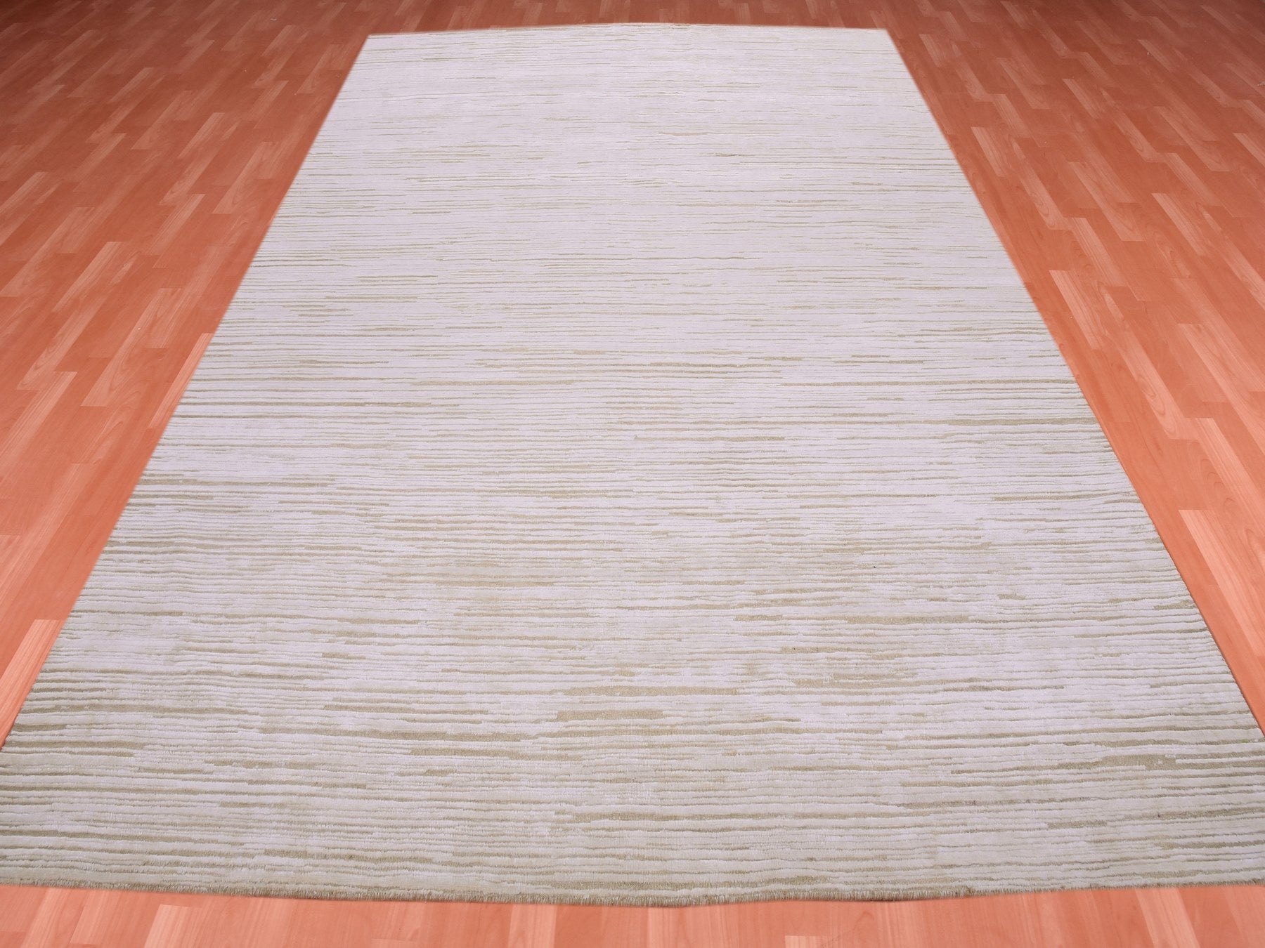 9'1" x 12'0" New Hand Knotted Ivory Wool & Silk Rectangle Oriental Rug - MOA10275038