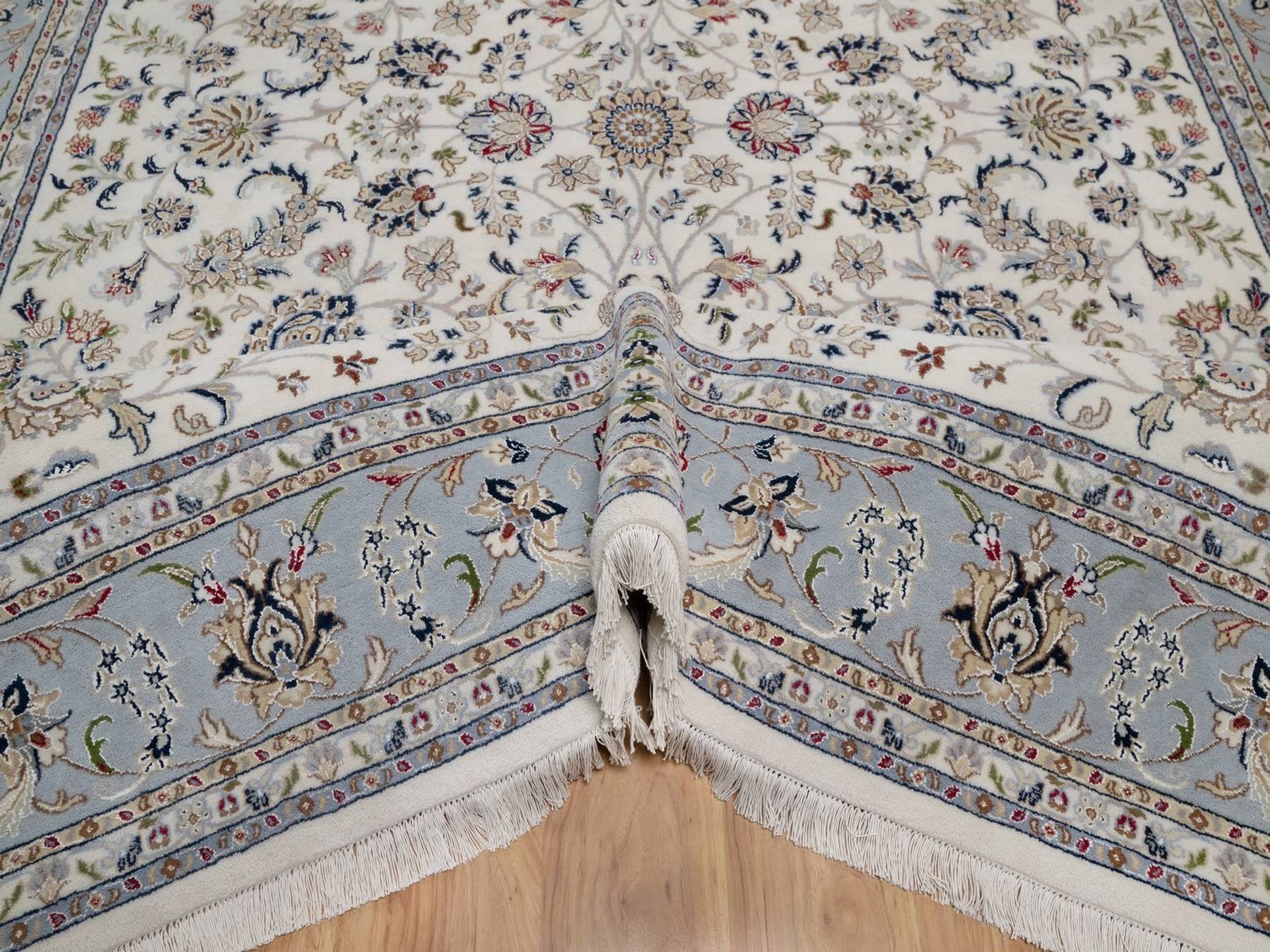 9'1" x 12'0" New Hand Knotted Ivory Wool & Silk Rectangle Oriental Rug - MOA10291549