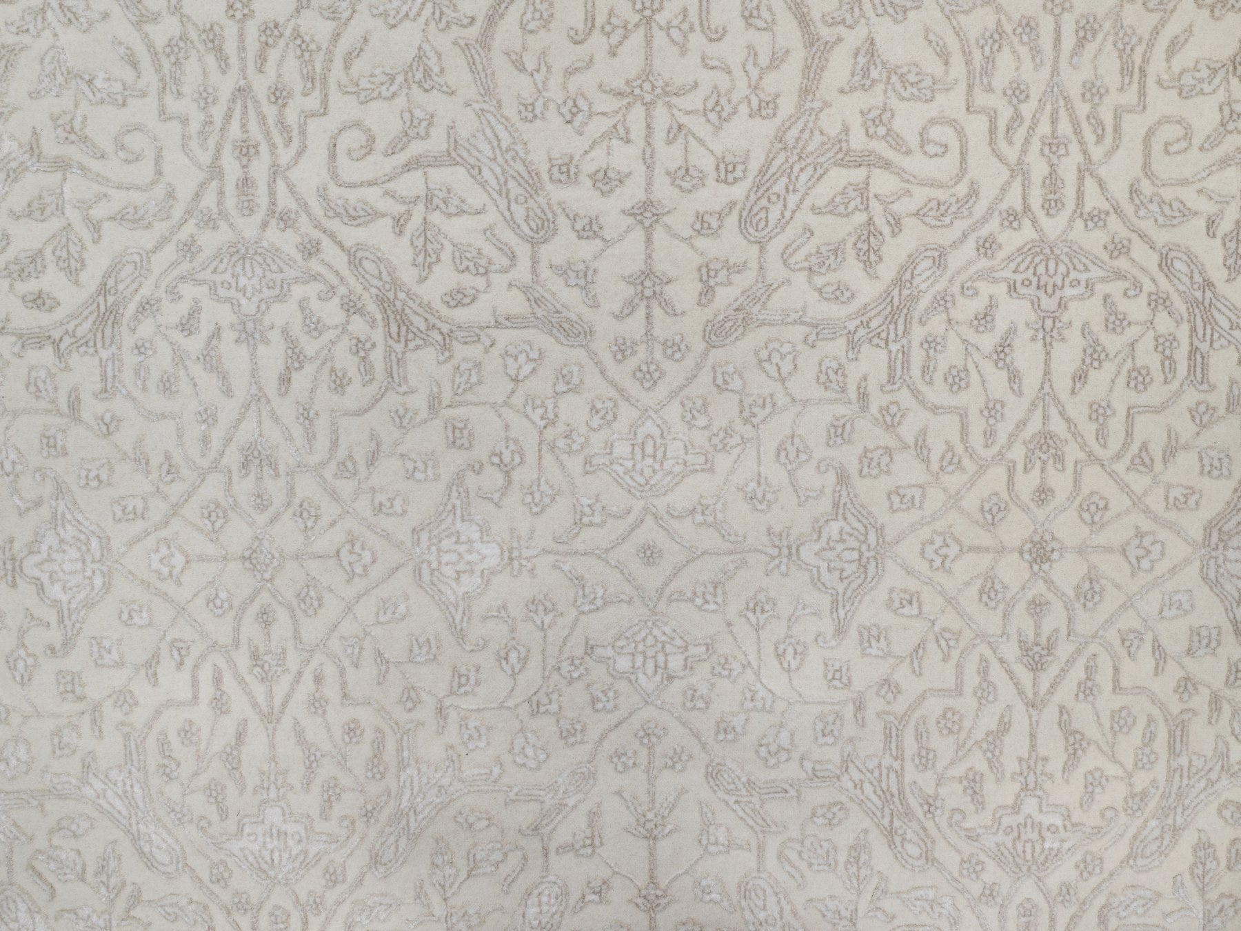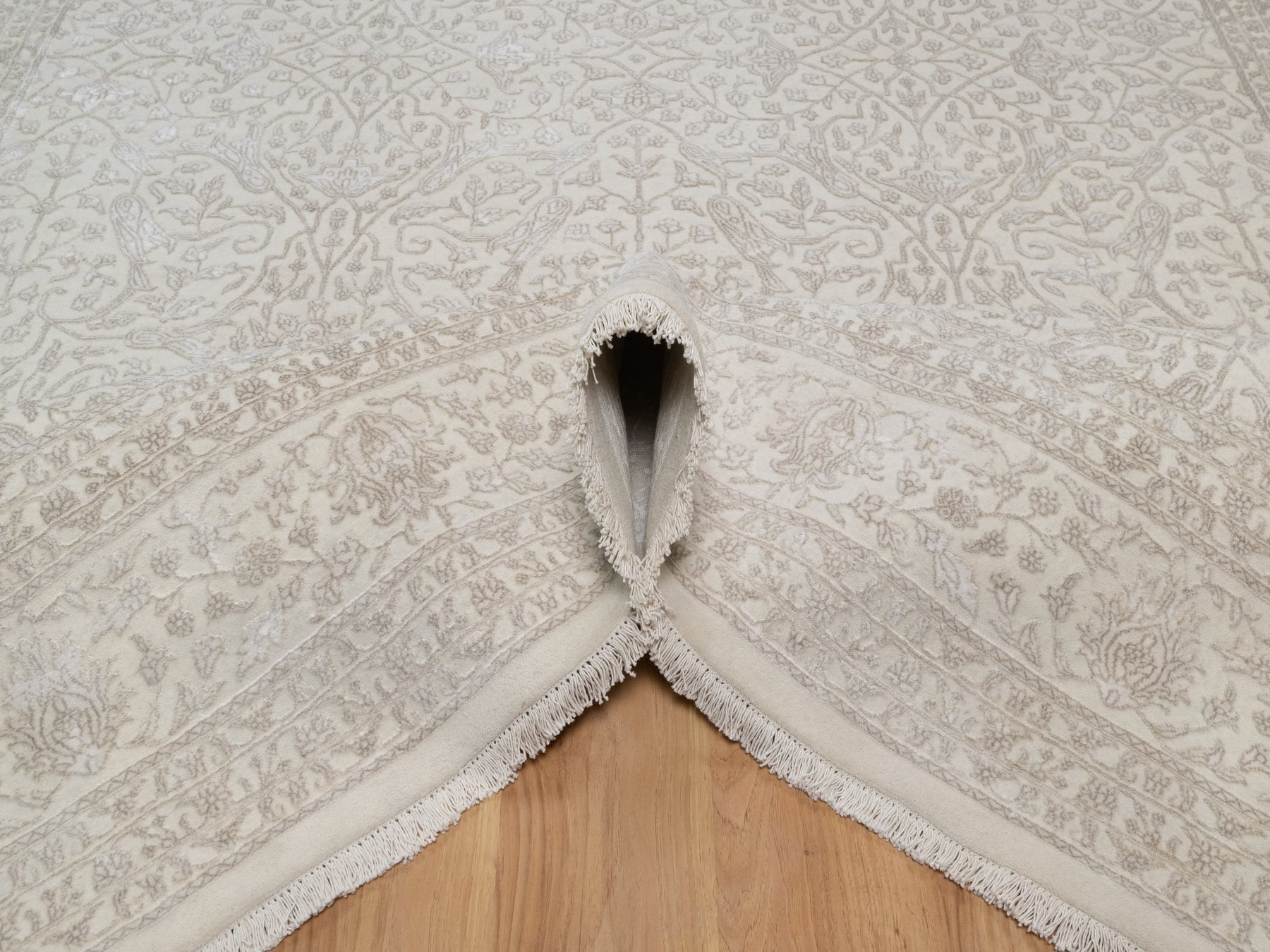 9'1" x 12'1" New Hand Knotted Ivory Wool & Silk Rectangle Oriental Rug - MOA10291365
