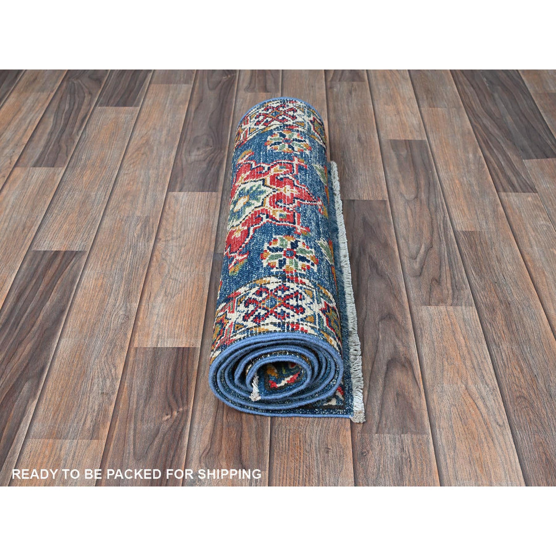 1'11" x 5'9" New Hand Knotted Blue Wool Runner Oriental Rug - MOA102499