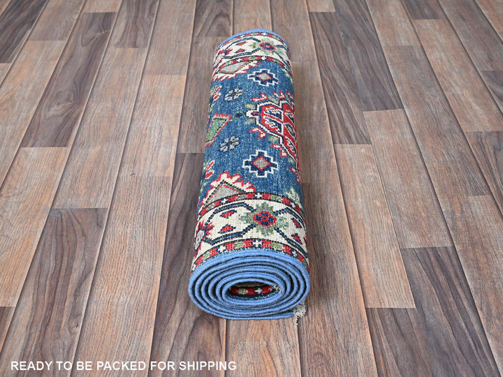 2'1" x 6'1" New Hand Knotted Blue Wool Runner Oriental Rug - MOA102487