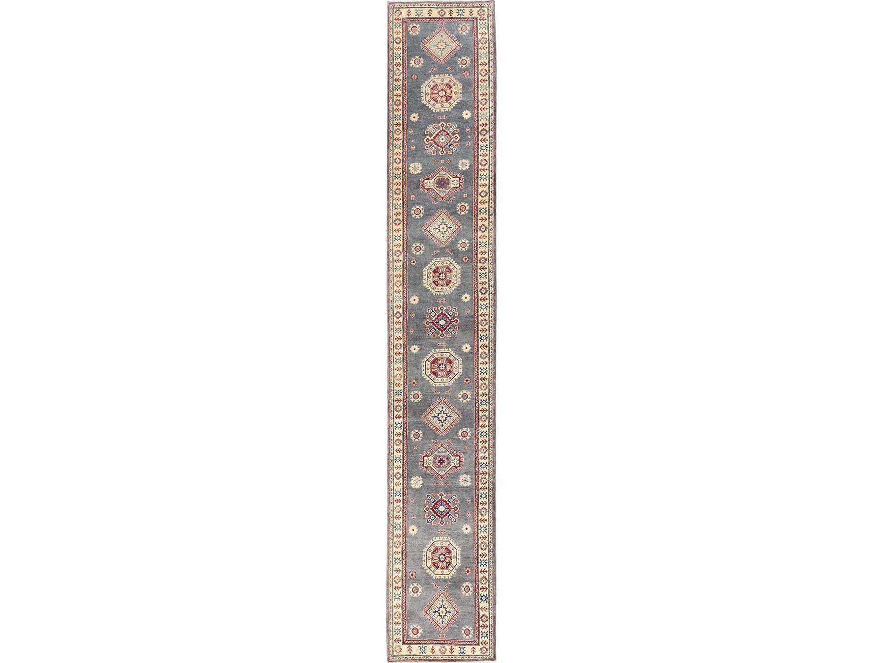 2'10" x 18'7" New Hand Knotted Grey Wool Runner Oriental Rug - MOA1022038