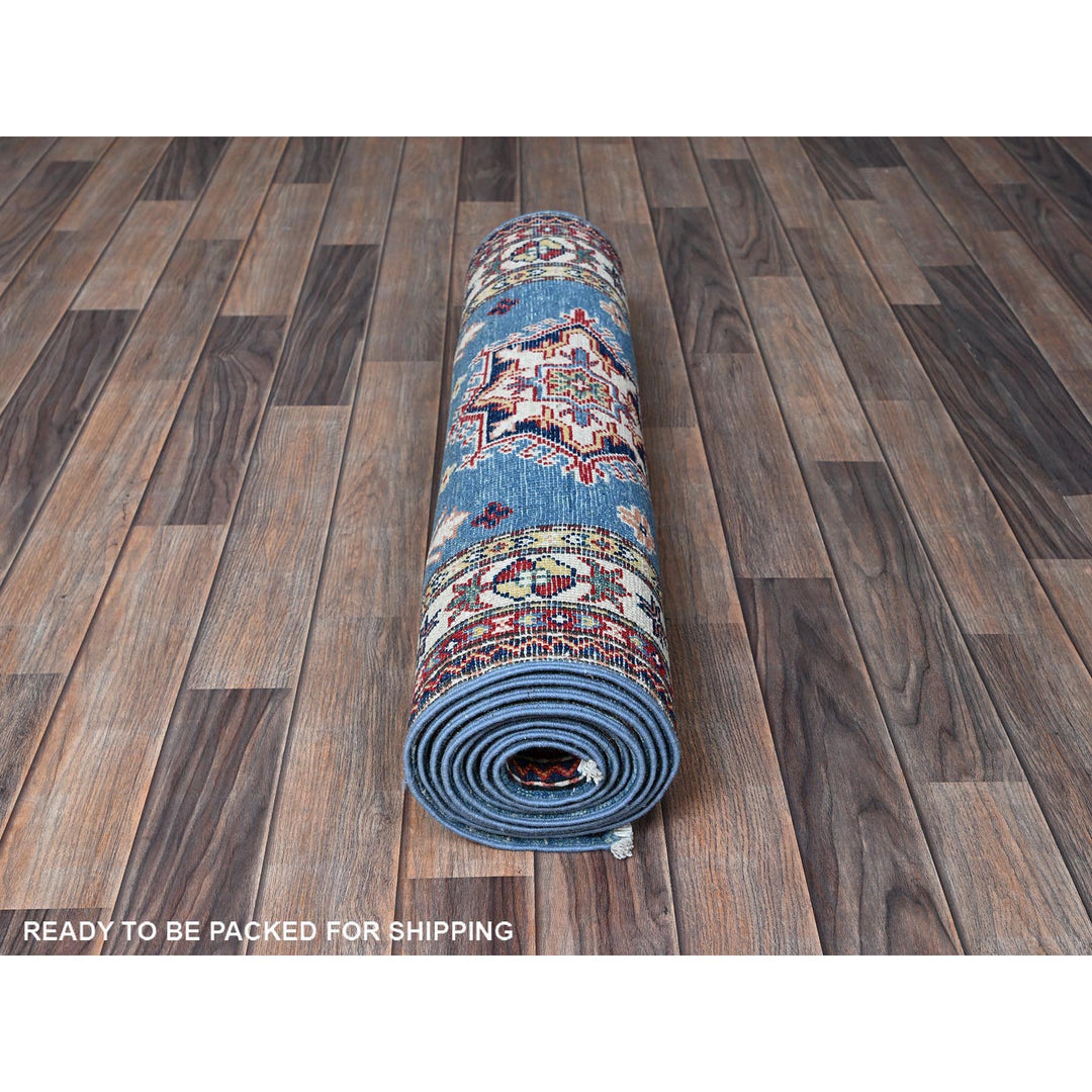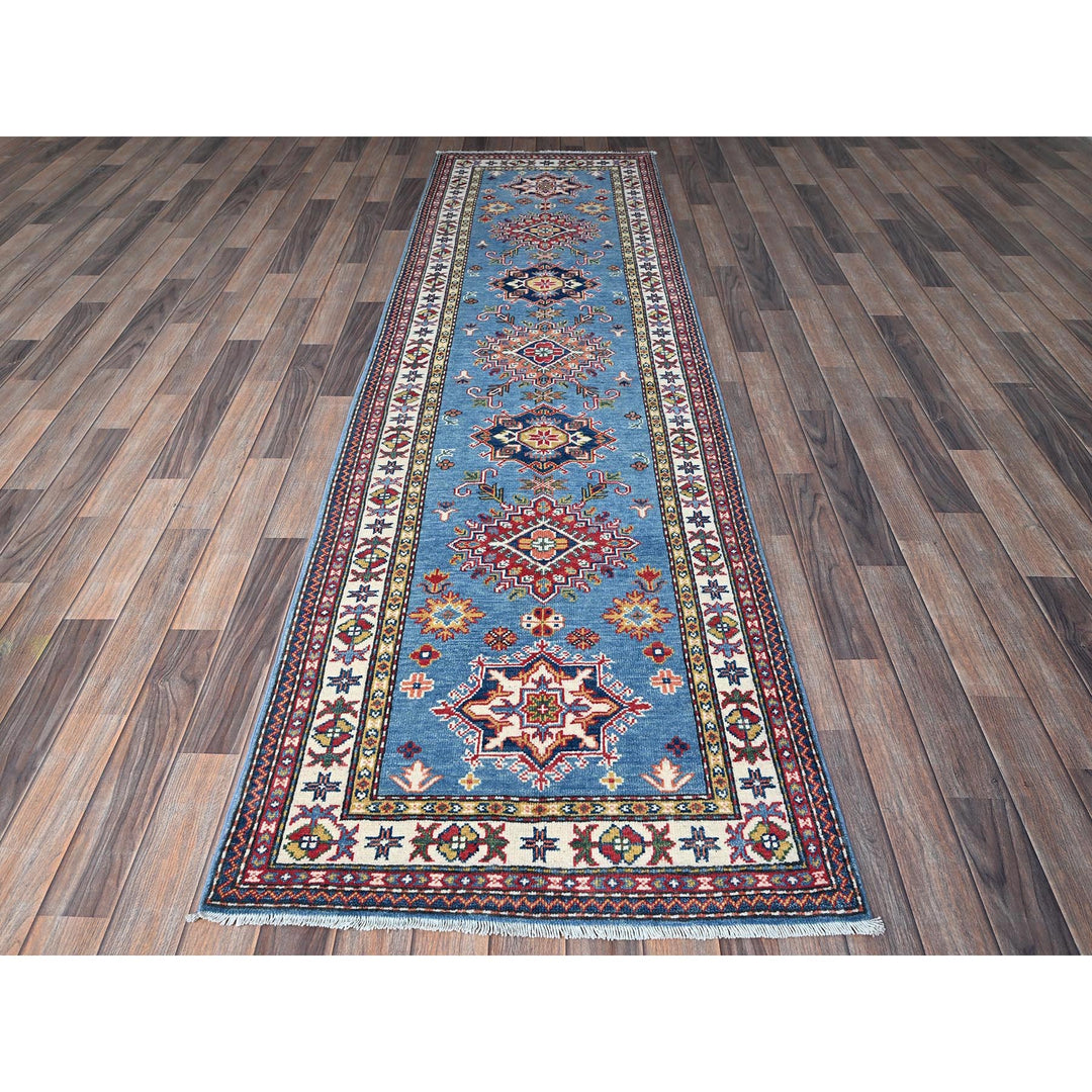 2'10" x 9'7" New Hand Knotted Blue Wool Runner Oriental Rug - MOA102460