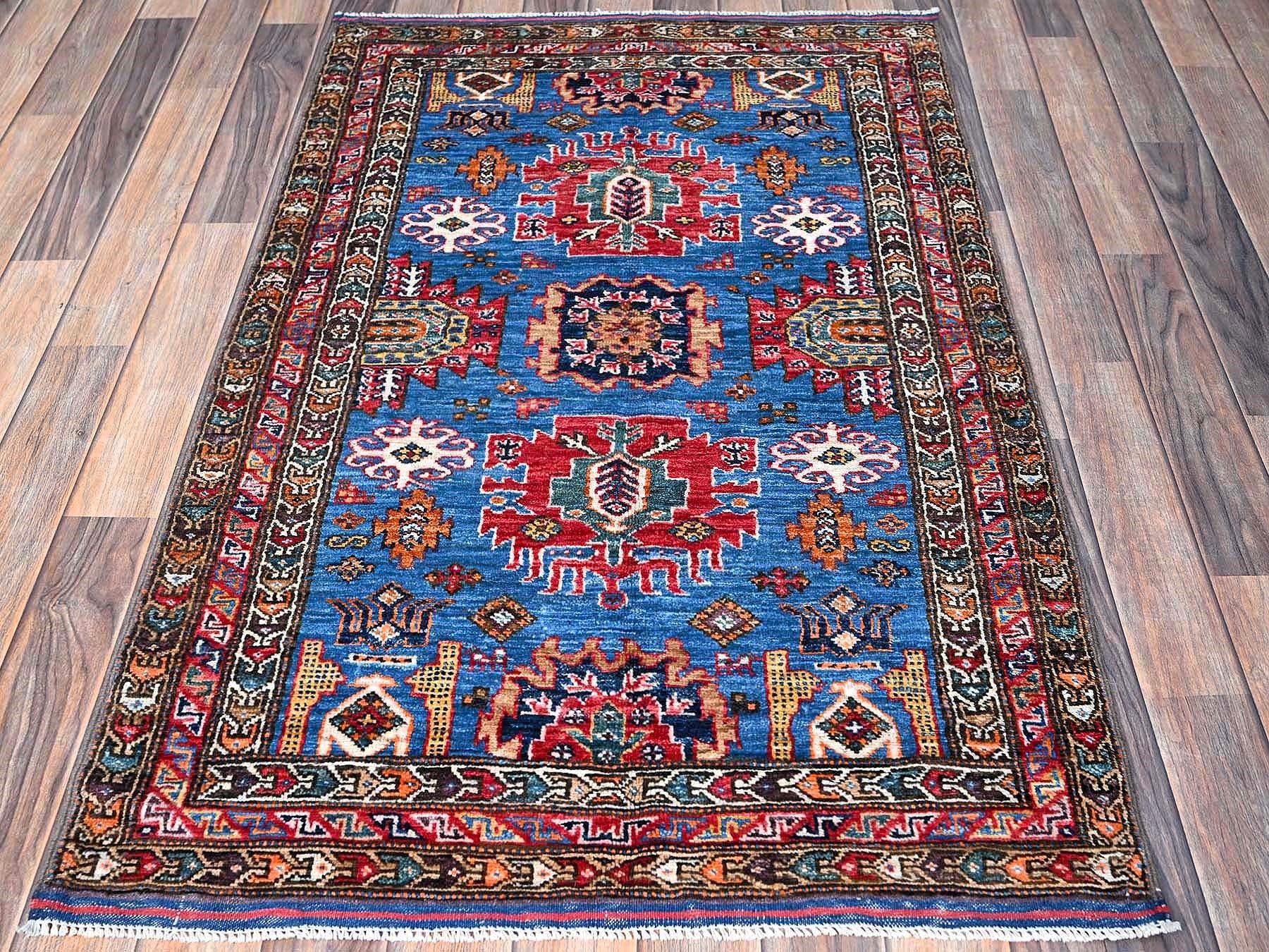 2'11" x 4'6" New Hand Knotted Blue Wool Rectangle Oriental Rug - MOA102627