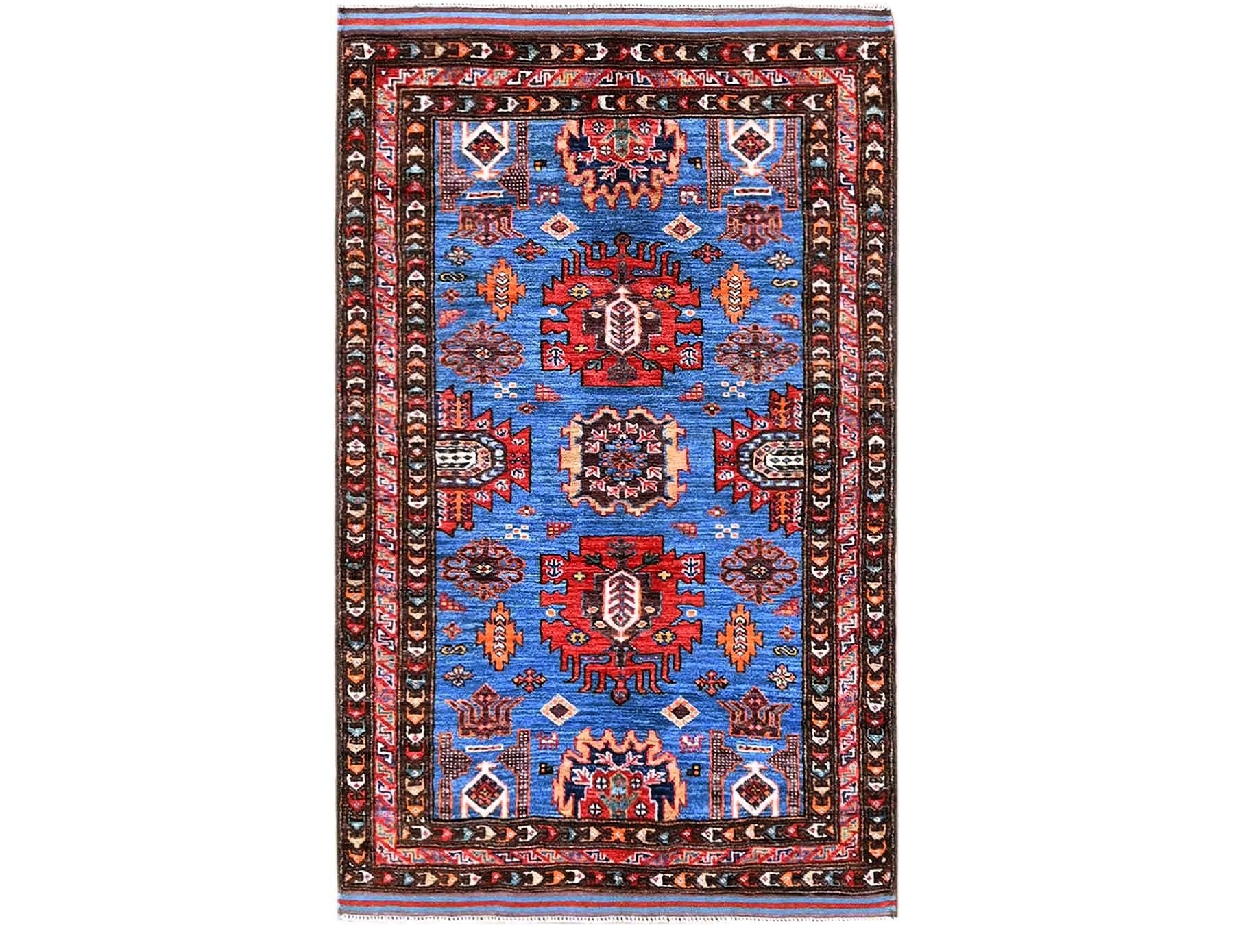2'11" x 4'8" New Hand Knotted Blue Wool Rectangle Oriental Rug - MOA102630