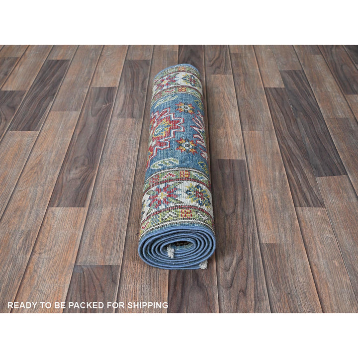 2'3" x 6'0" New Hand Knotted Blue Wool Runner Oriental Rug - MOA102488