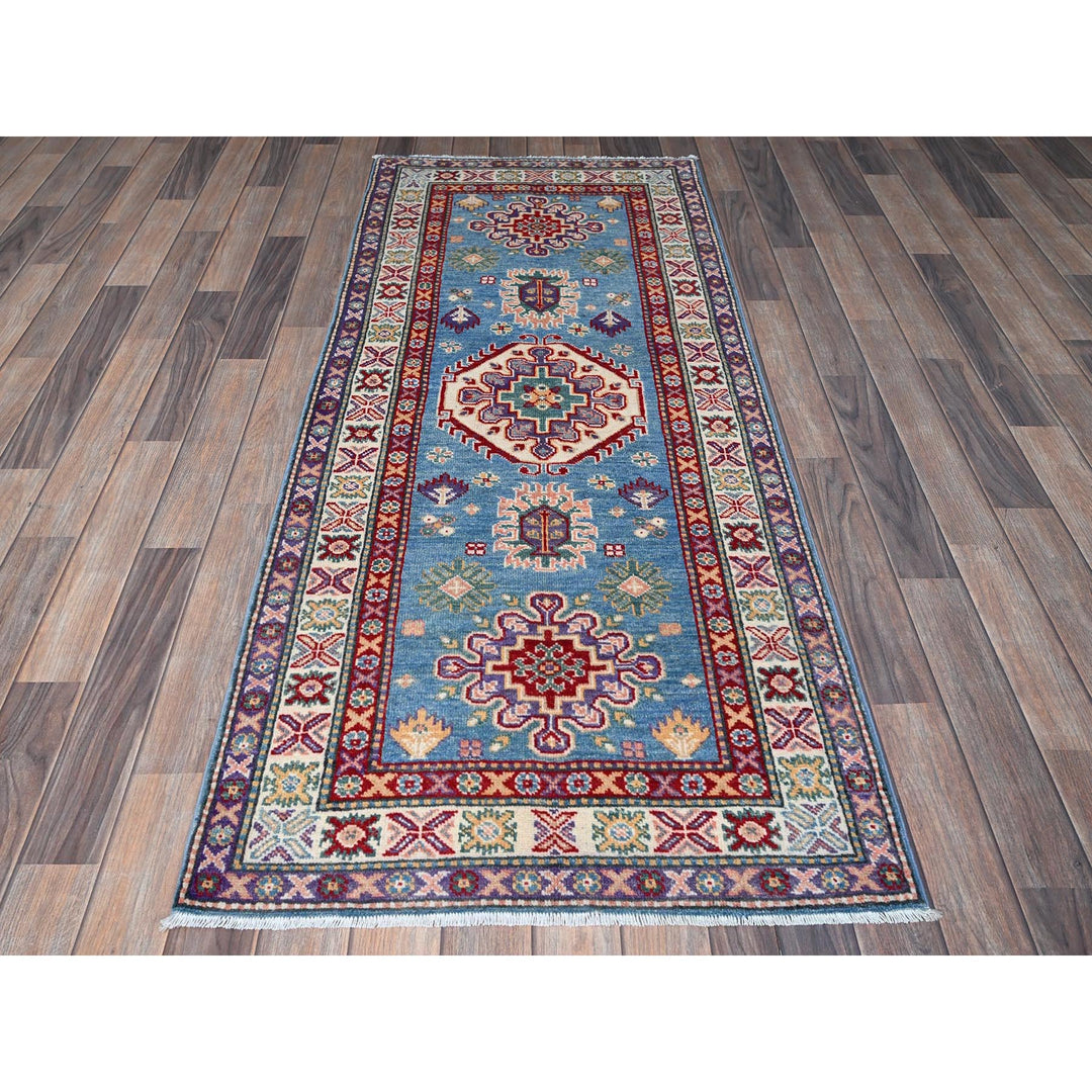 2'8" x 6'4" New Hand Knotted Blue Wool Runner Oriental Rug - MOA102446