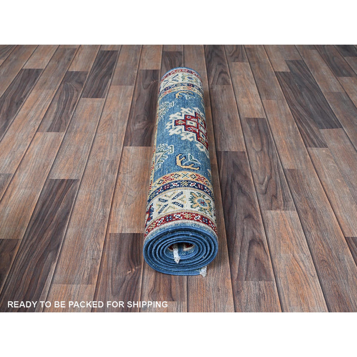 2'8" x 6'6" New Hand Knotted Blue Wool Runner Oriental Rug - MOA102449