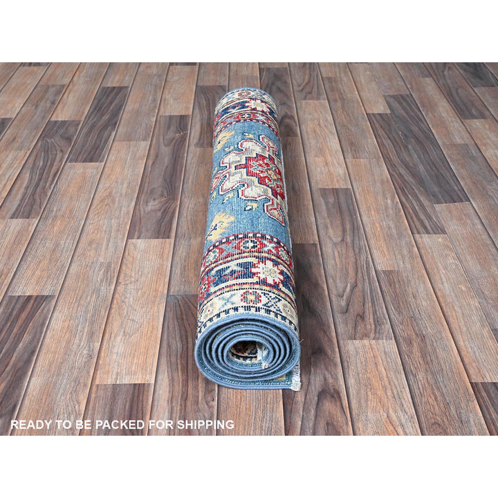 2'8" x 6'8" New Hand Knotted Blue Wool Runner Oriental Rug - MOA102469