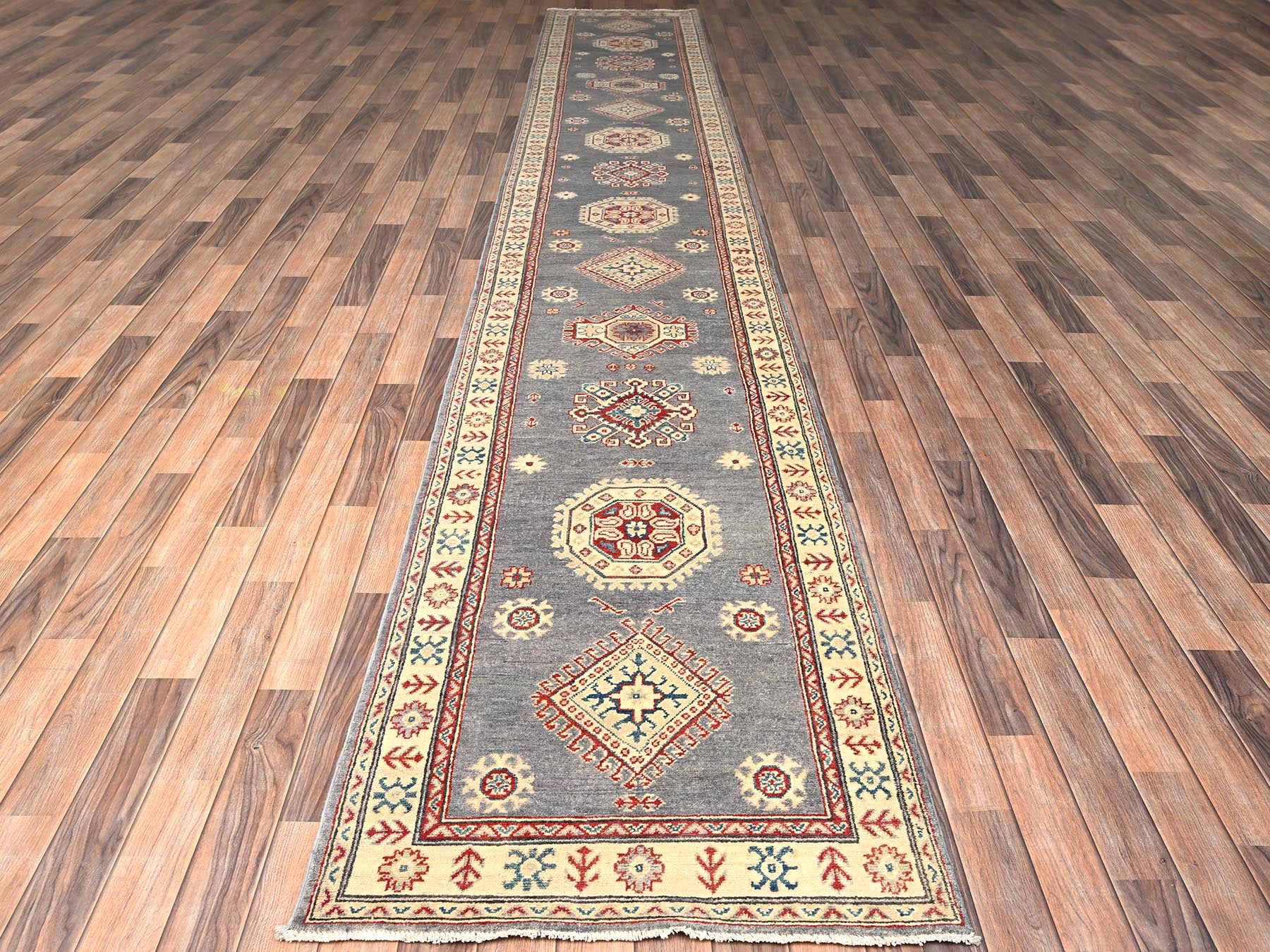 2'9" x 18'7" New Hand Knotted Grey Wool Runner Oriental Rug - MOA1022039