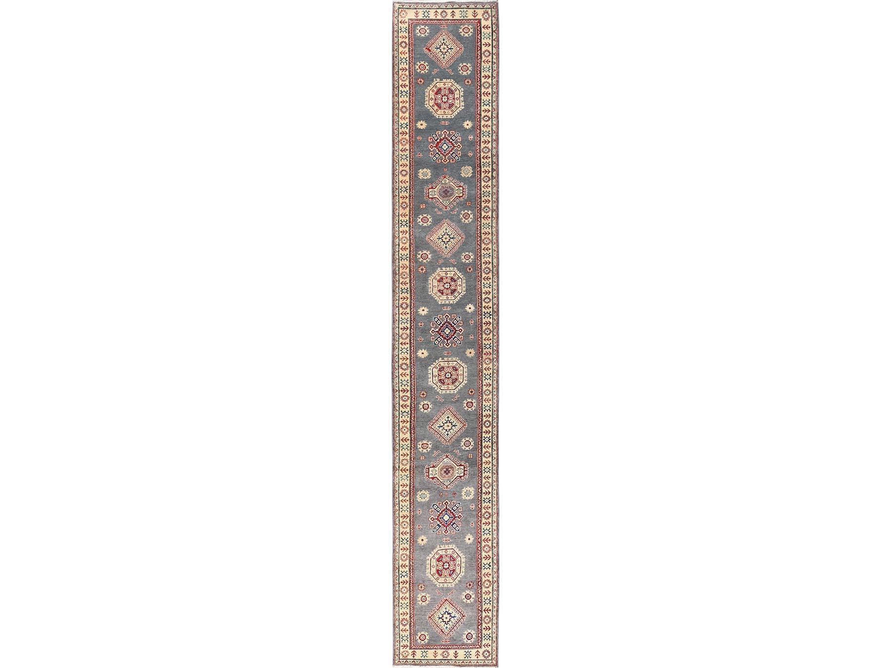 2'9" x 18'9" New Hand Knotted Grey Wool Runner Oriental Rug - MOA1022037