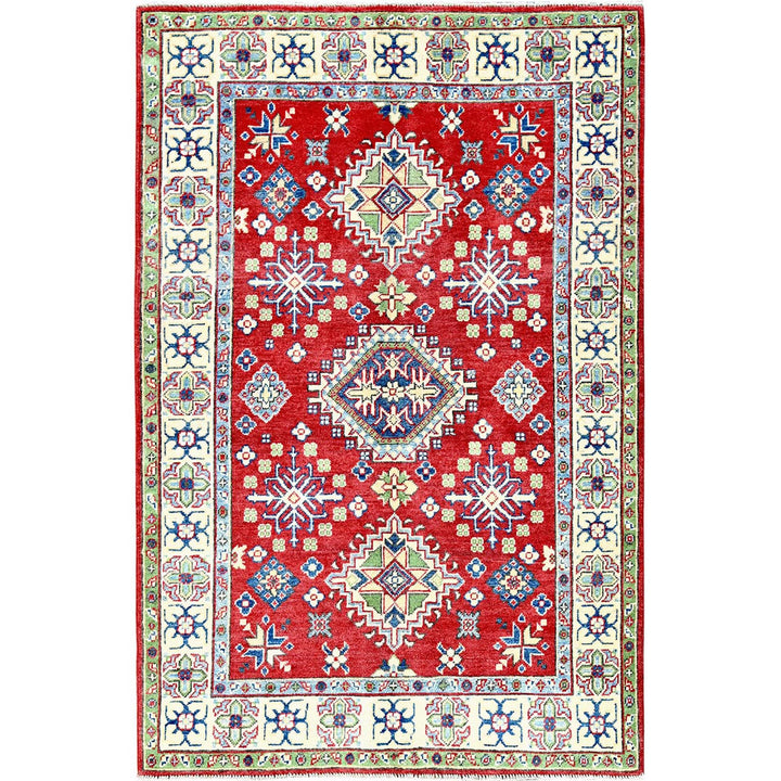 3'11" x 6'0" New Hand Knotted Red Wool Rectangle Oriental Rug - MOA102358