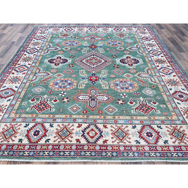 7'11" x 9'7" New Hand Knotted Green Wool Rectangle Oriental Rug - MOA102524