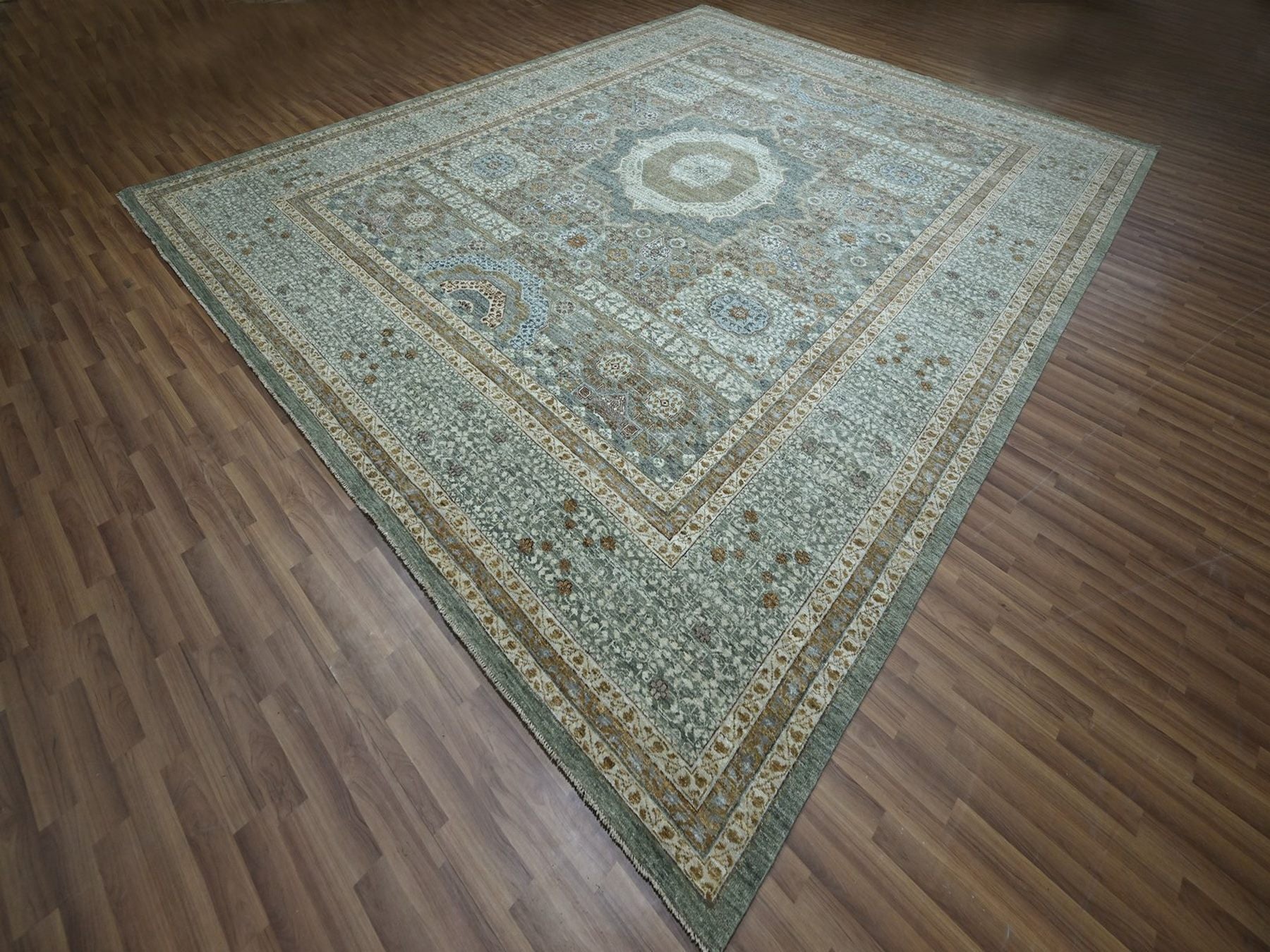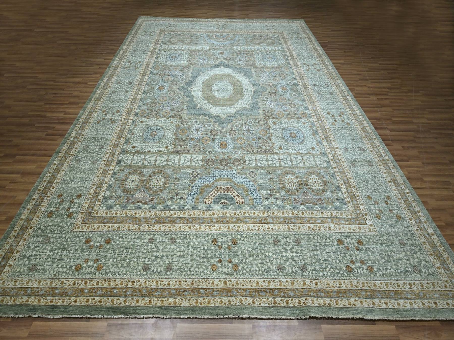 12'0" x 14'10" New Hand Knotted Green Wool Rectangle Oriental Rug - MOA10276847
