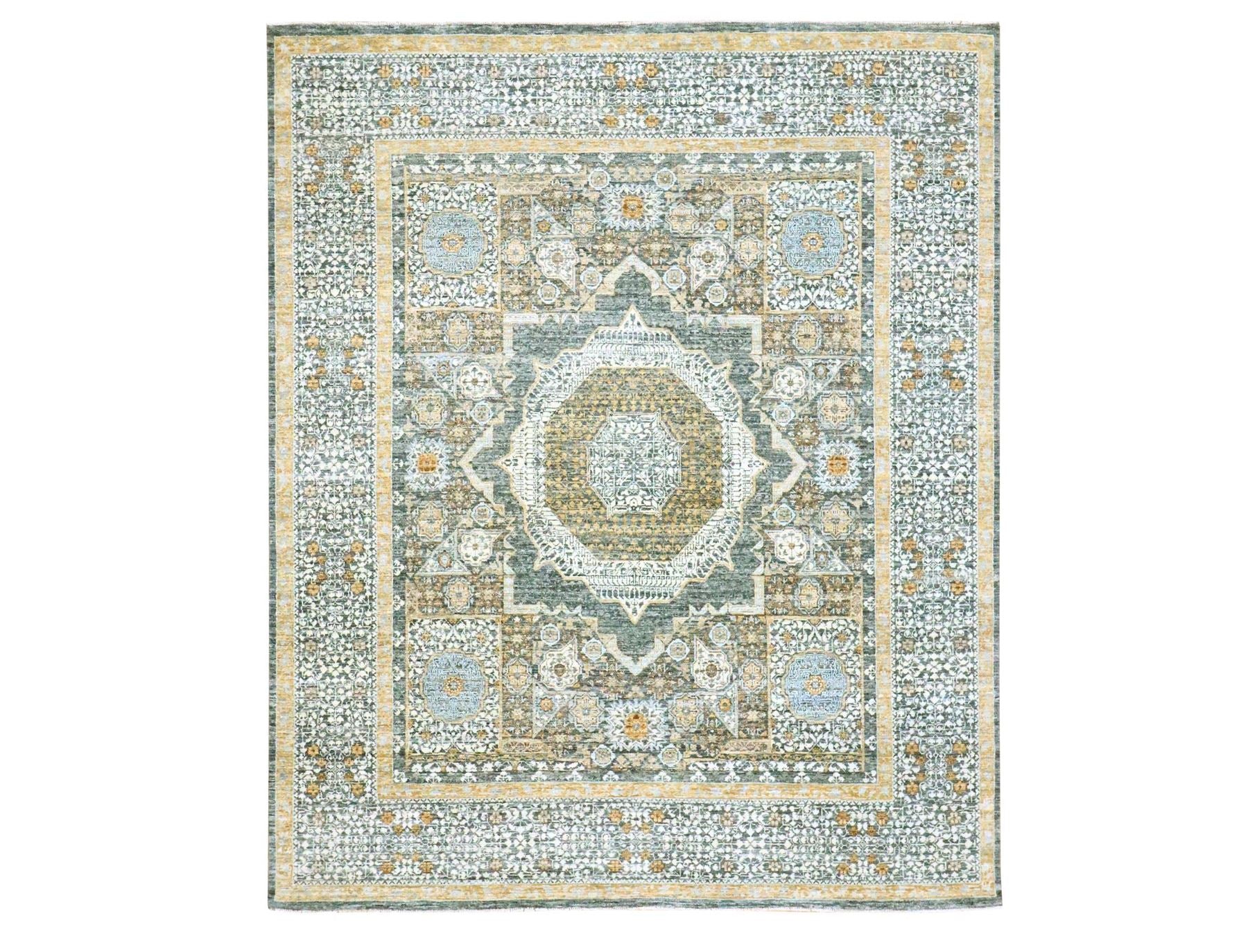 8'3" x 10'1" New Hand Knotted Green Wool Rectangle Oriental Rug - MOA10276435
