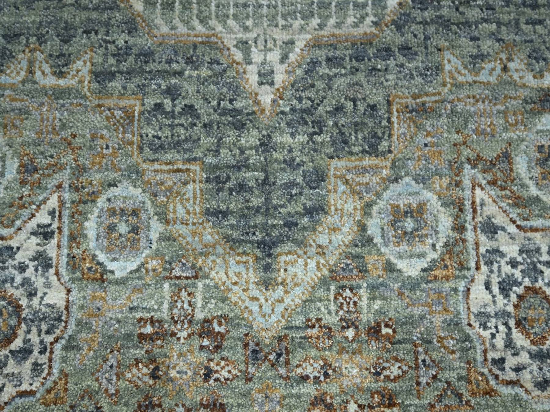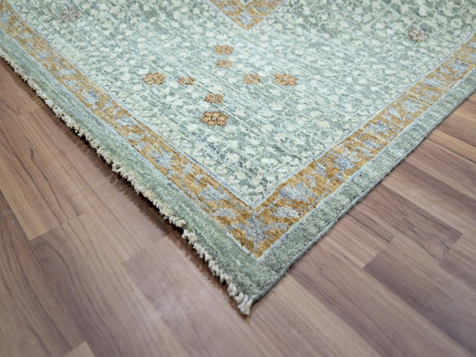 9'0" x 12'0" New Hand Knotted Green Wool Rectangle Oriental Rug - MOA10276851