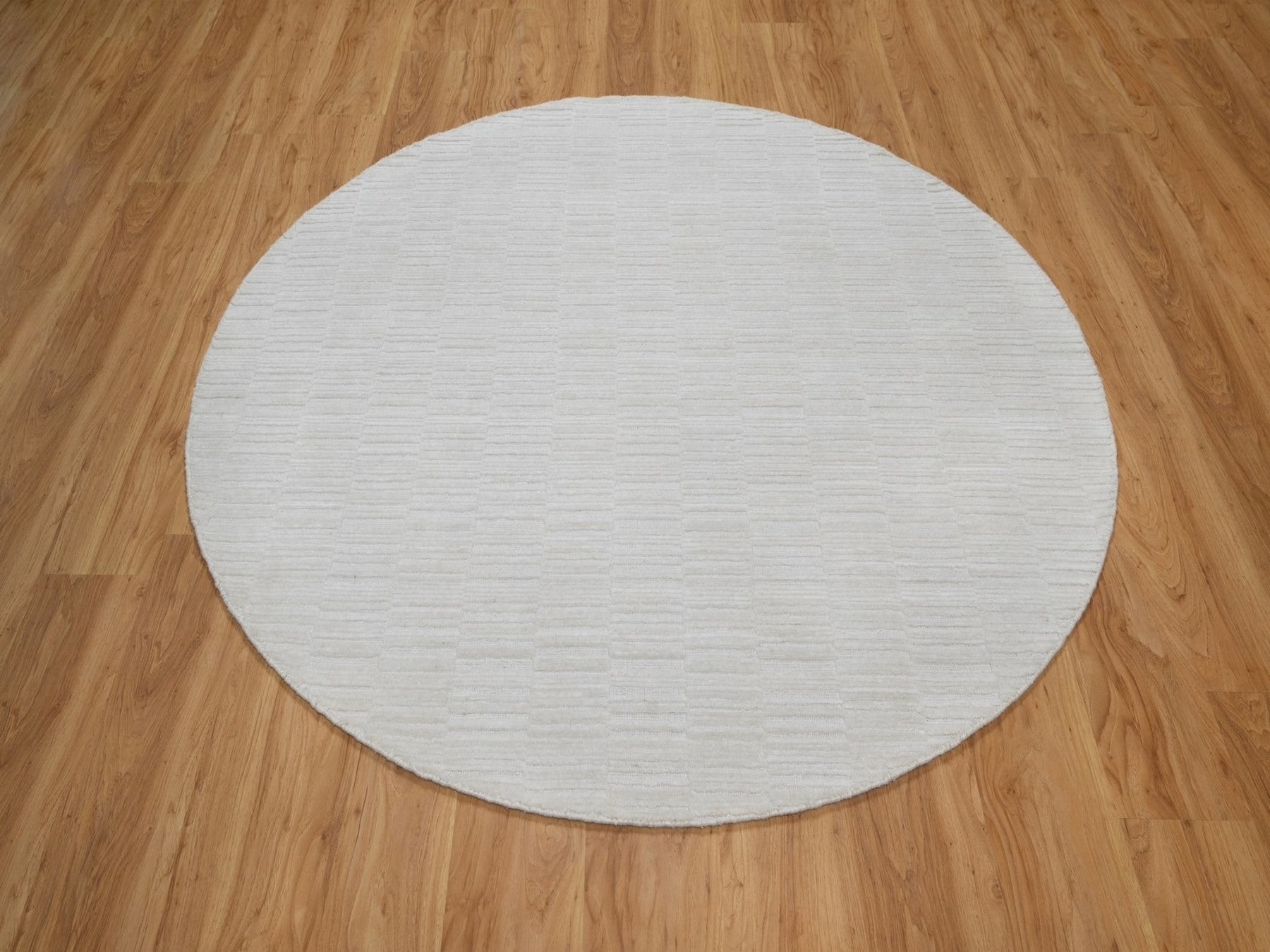 6'0" x 6'0" New Hand Loomed Ivory Wool Round Oriental Rug - MOA10292241