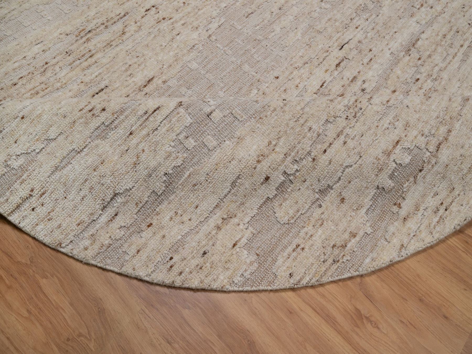 8'0" x 8'0" New Hand Knotted Ivory Wool Round Oriental Rug - MOA10292392