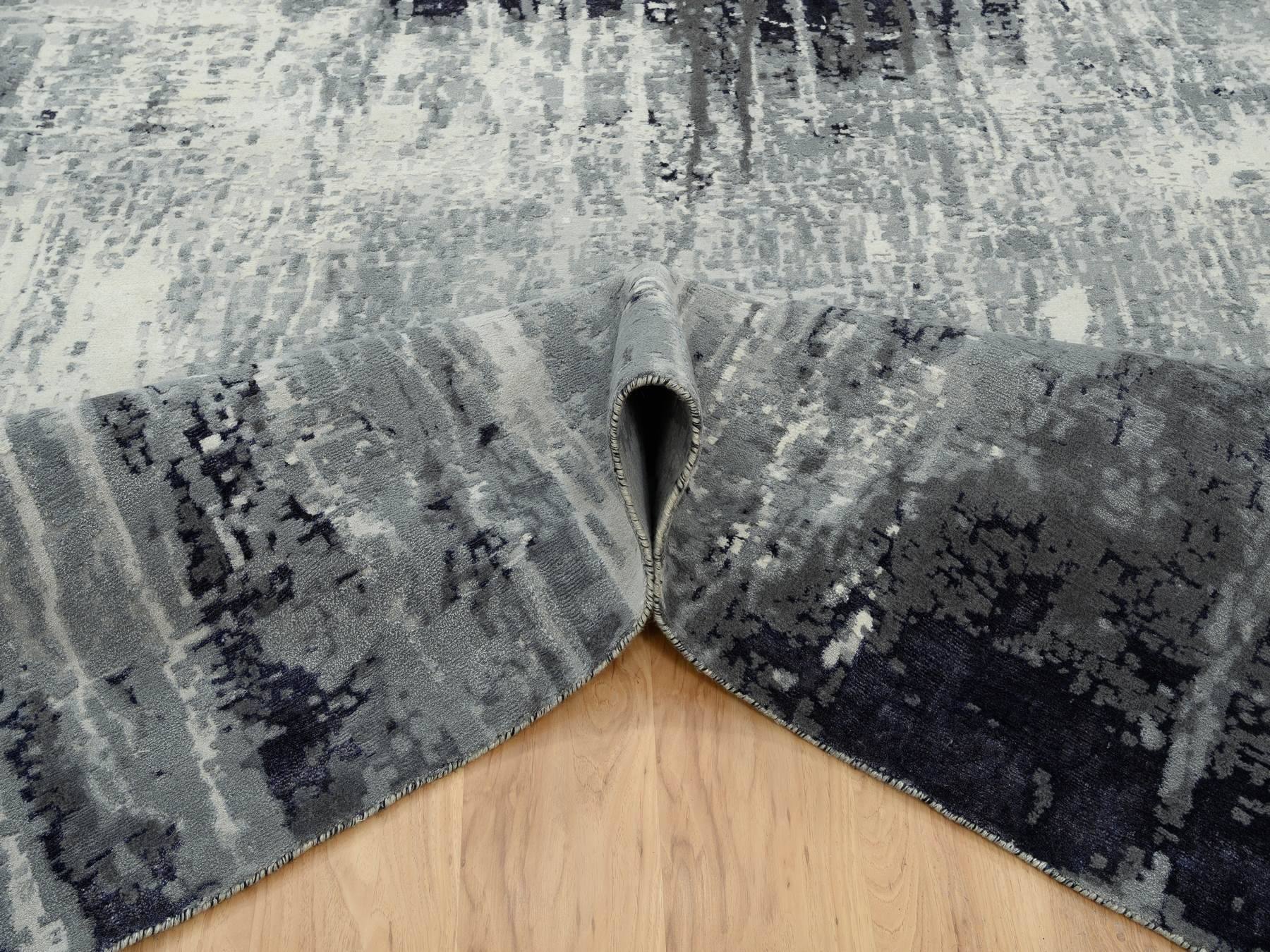 10'0" x 10'0" New Hand Knotted Black Wool & Silk Square Oriental Rug - MOA10263808