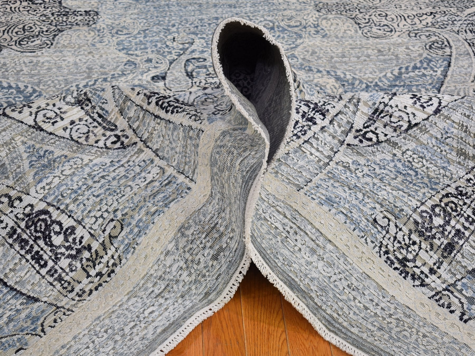 10'3" x 14'3" New Hand Knotted Blue Wool & Silk Rectangle Oriental Rug - MOA10266392