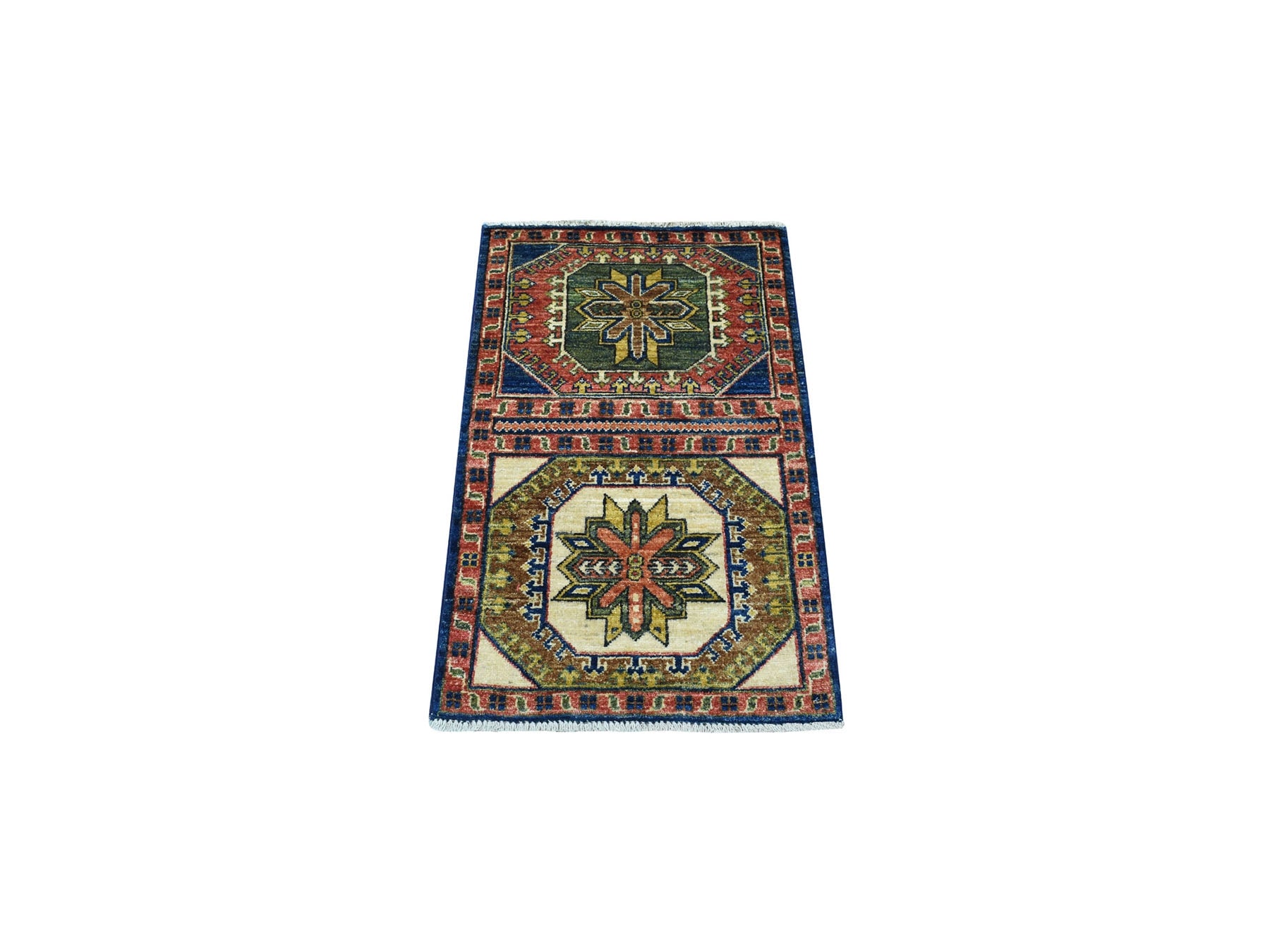 1'10" x 3'0" New Hand Knotted Blue Wool Rectangle Oriental Rug - MOA10256764