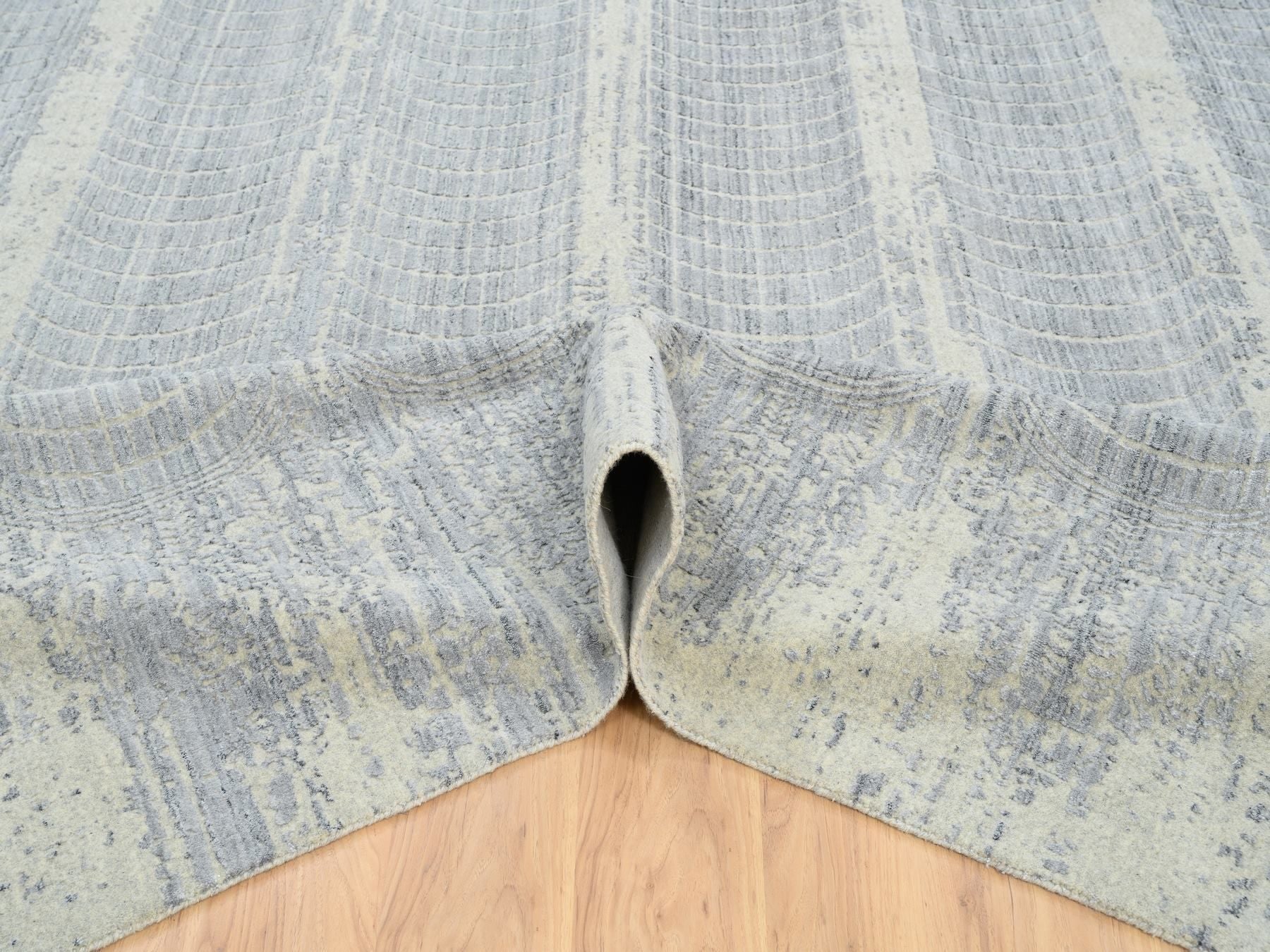 12'0" x 15'2" New Hand Loomed Grey Wool & Silk Rectangle Oriental Rug - MOA10263804