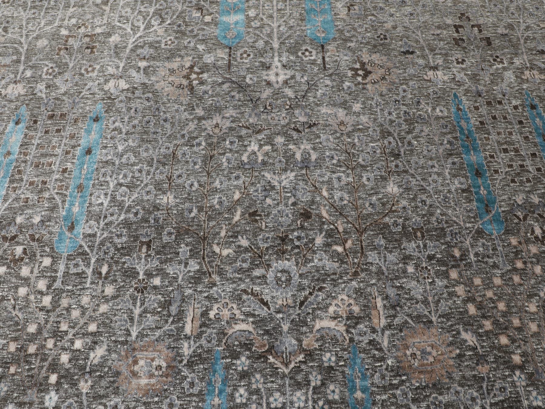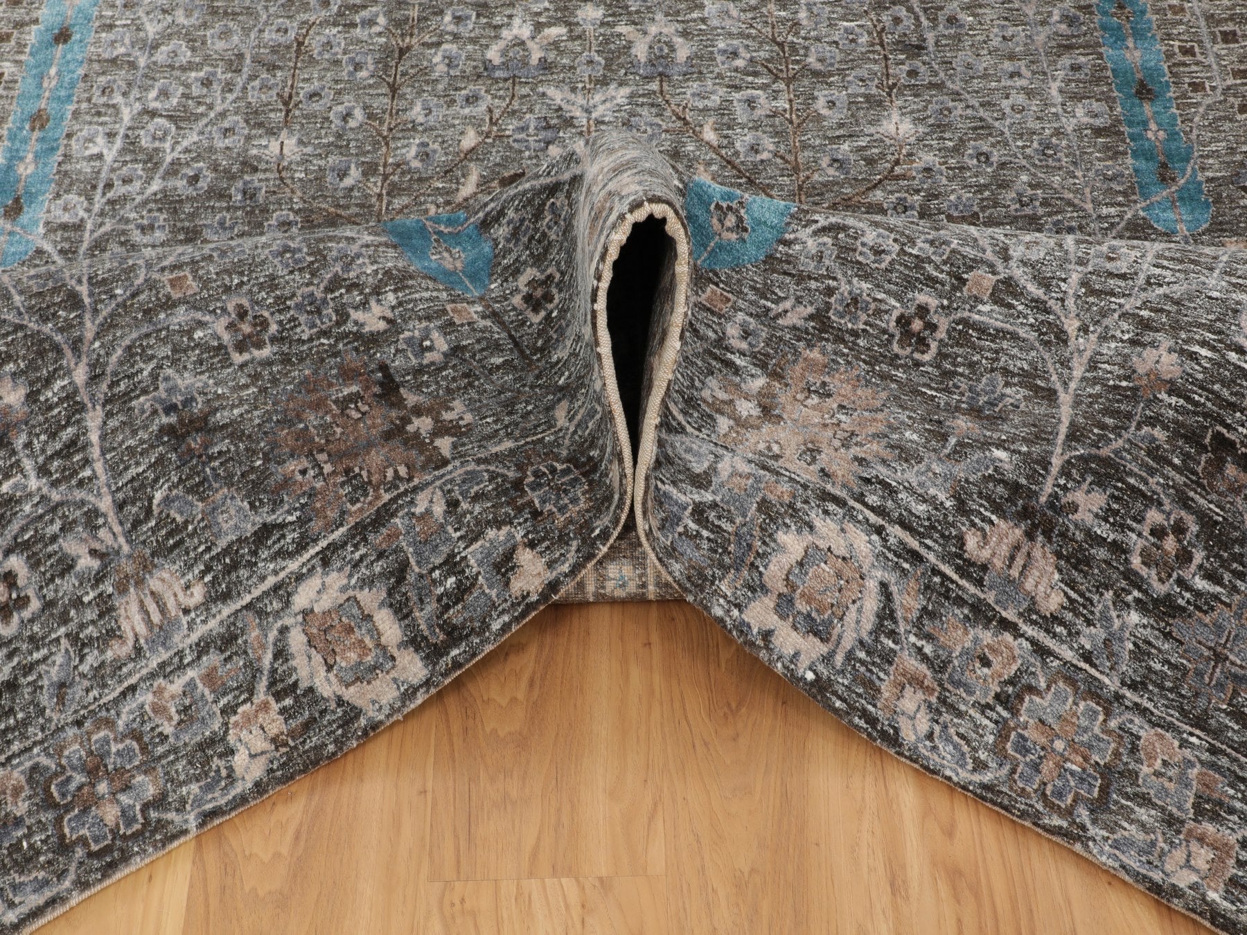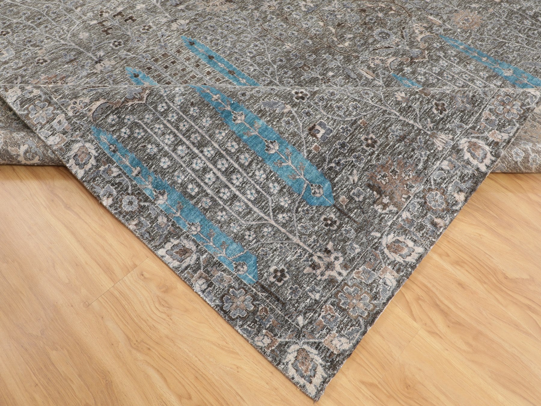 12'0" x 17'9" New Hand Knotted Brown Wool & Silk Rectangle Oriental Rug - MOA10258142