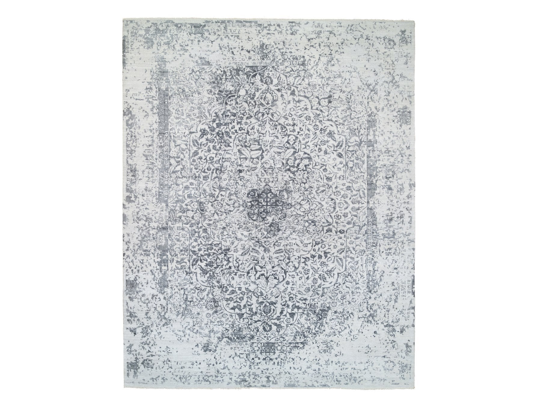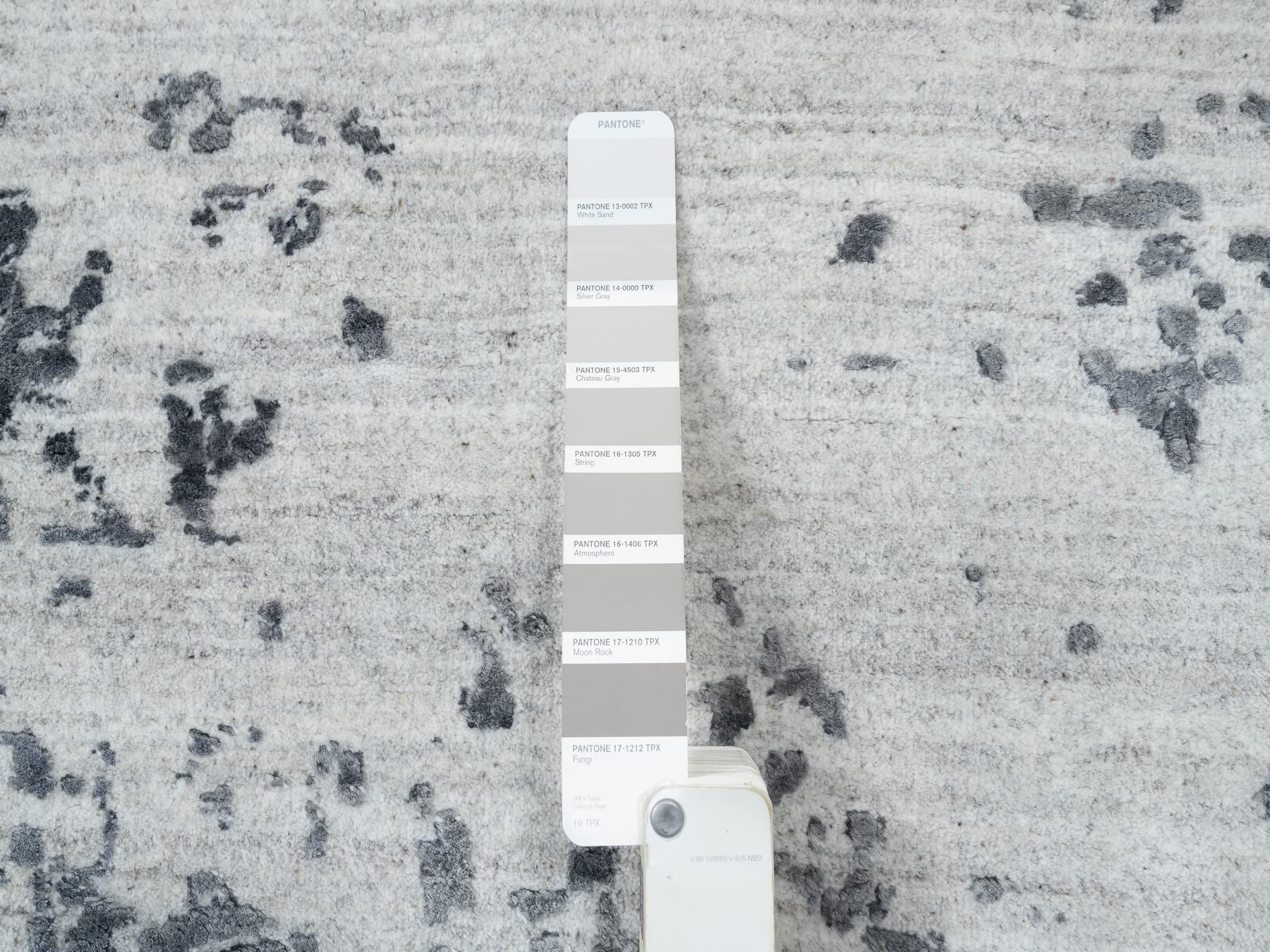 12'1" x 15'1" New Hand Knotted Grey Wool & Silk Rectangle Oriental Rug - MOA10264054