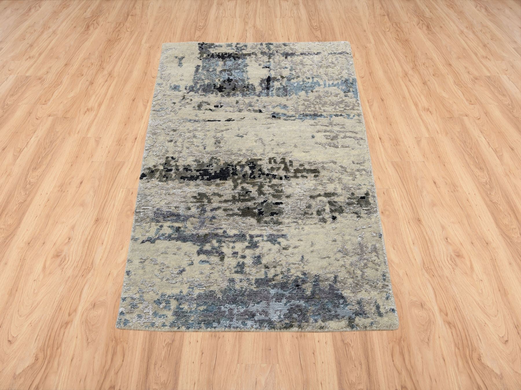 2'0" x 3'0" New Hand Knotted Grey Wool & Silk Rectangle Oriental Rug - MOA10263886