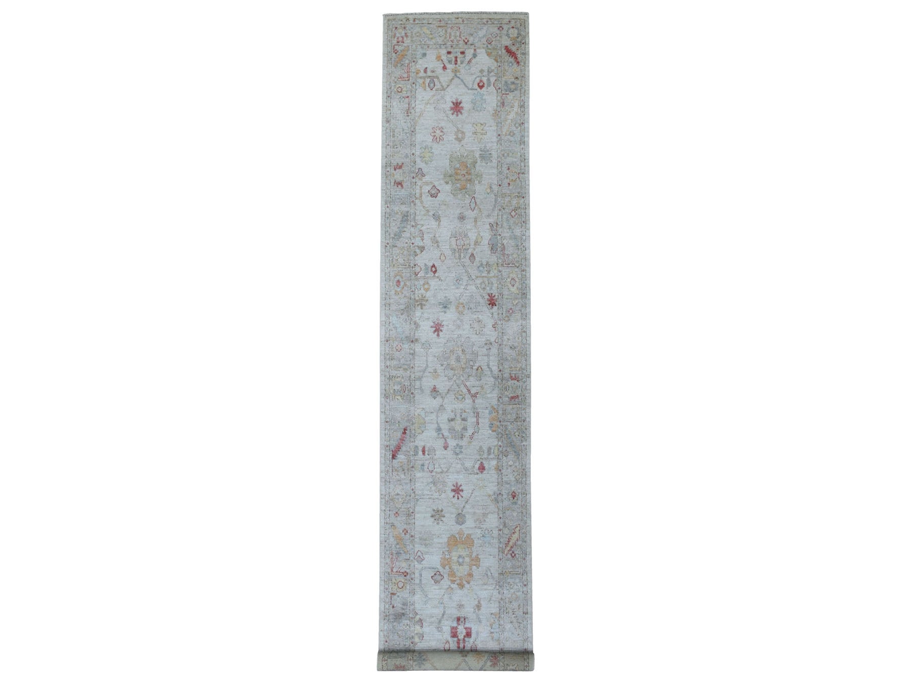 2'9" x 16'0" New Hand Knotted Grey Wool Runner Oriental Rug - MOA10256089