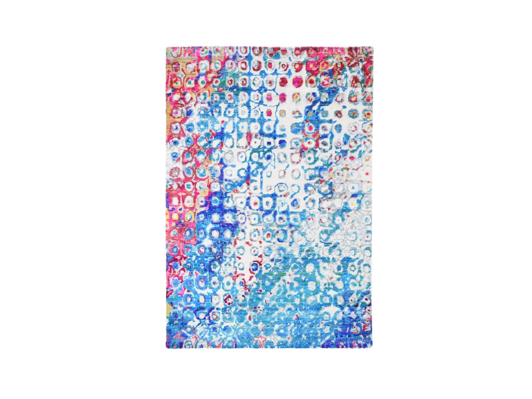 4'0" x 6'0" New Hand Knotted Blue Wool & Silk Rectangle Oriental Rug - MOA10259719