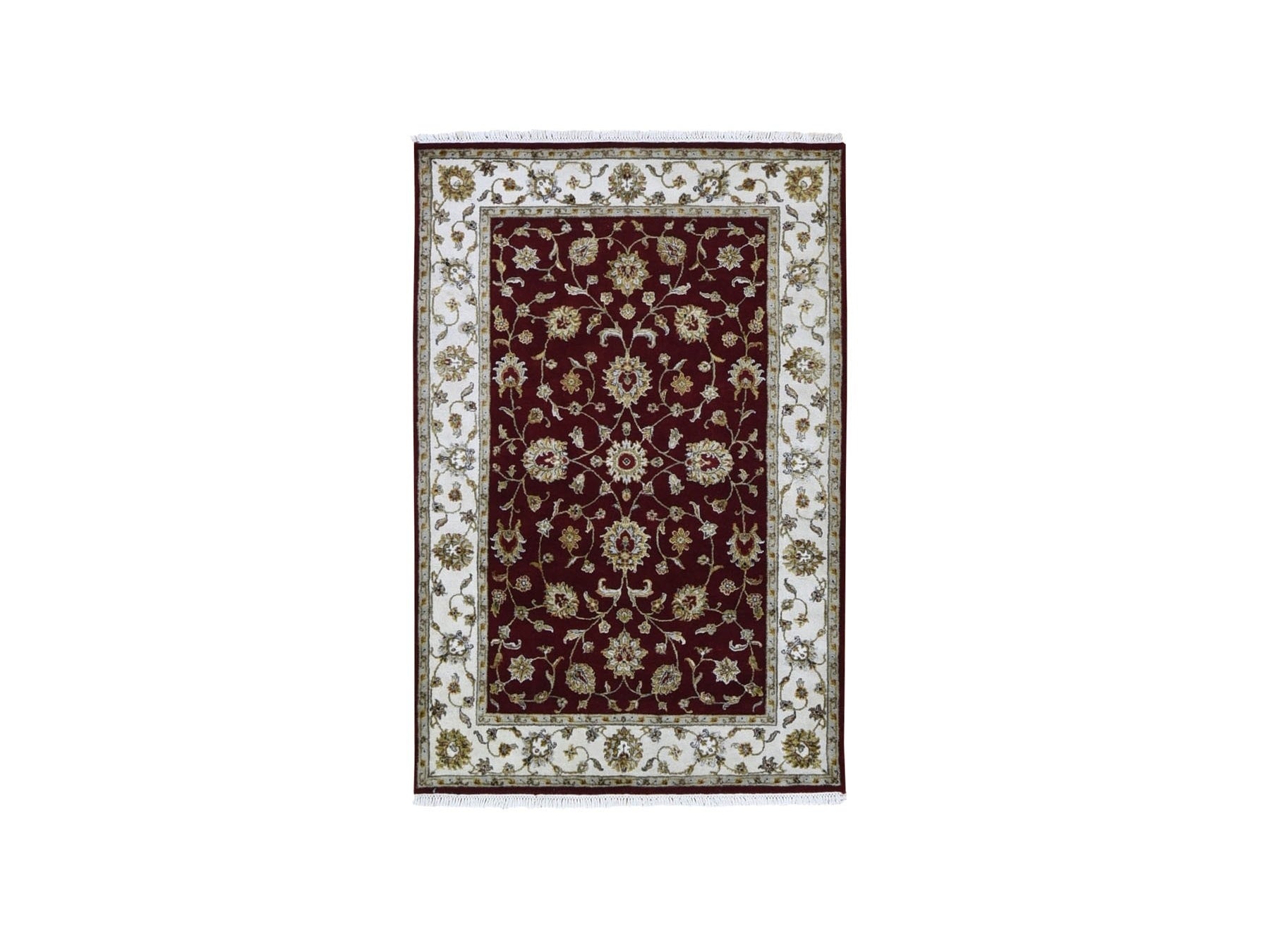 4'0" x 6'0" New Hand Knotted Red Wool & Silk Rectangle Oriental Rug - MOA10259594