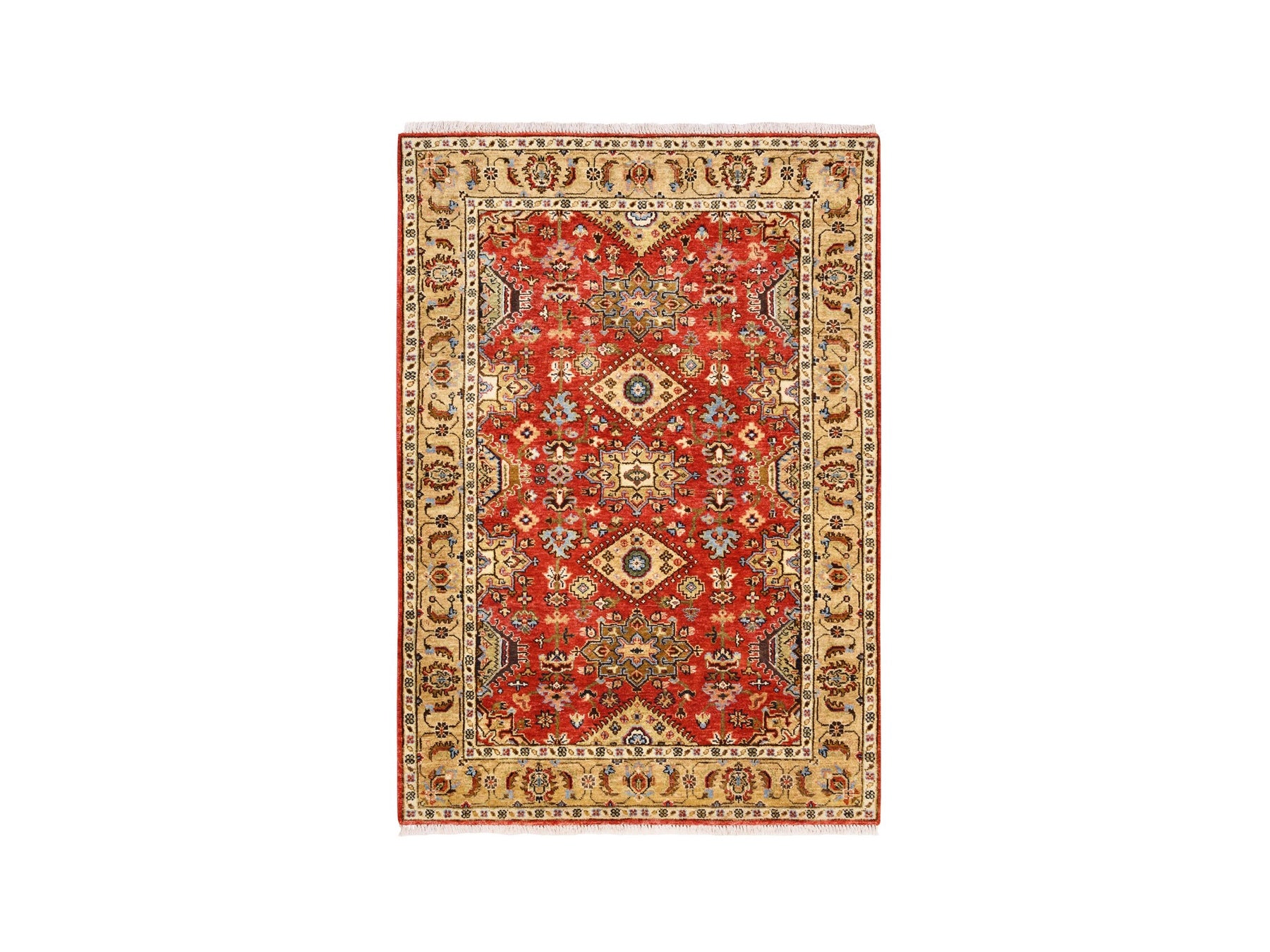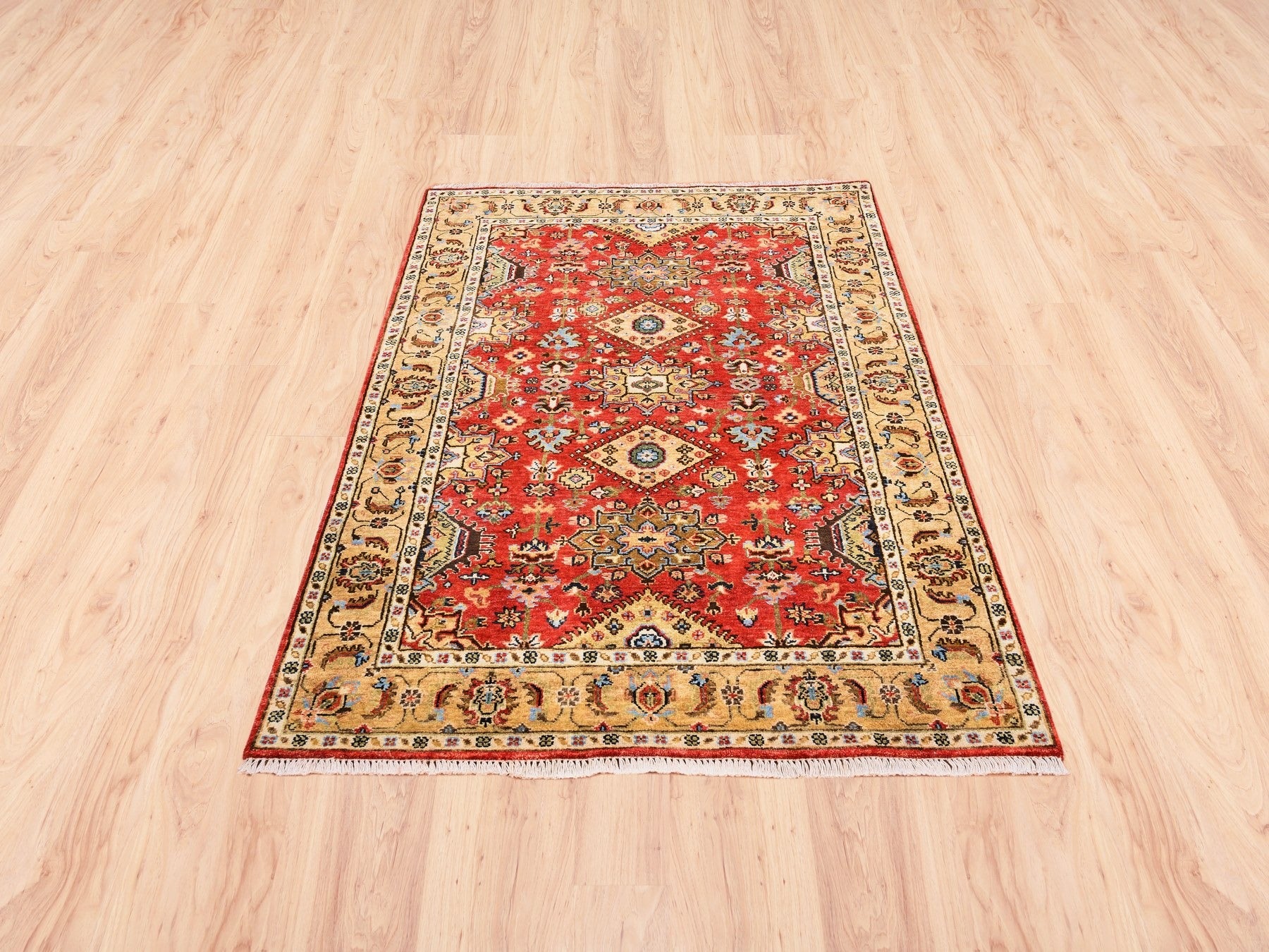 4'1" x 6'0" New Hand Knotted Red Wool Rectangle Oriental Rug - MOA10262651