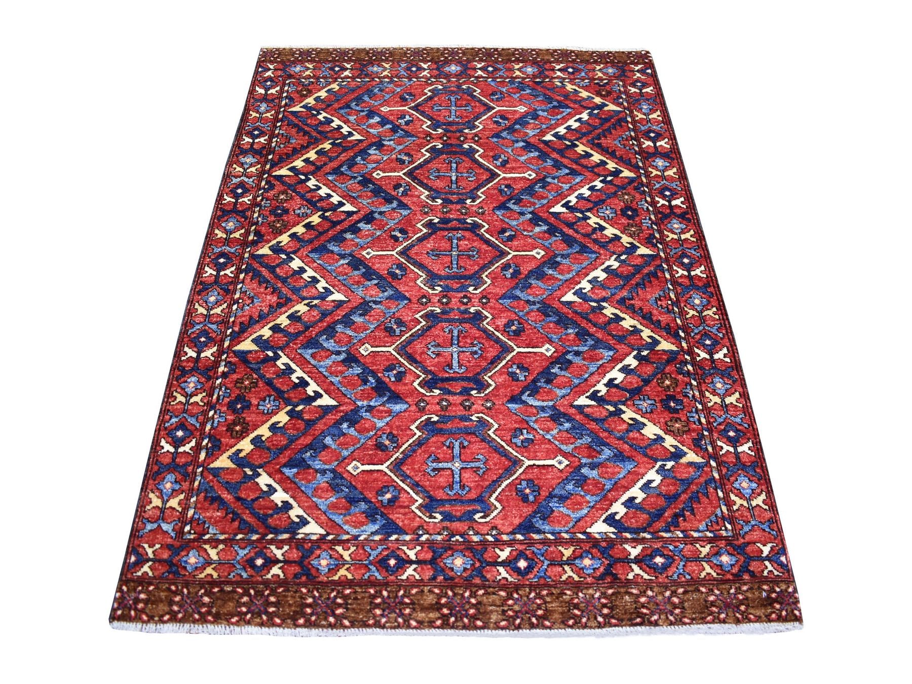 4'1" x 6'0" New Hand Knotted Red Wool Rectangle Oriental Rug - MOA10270917